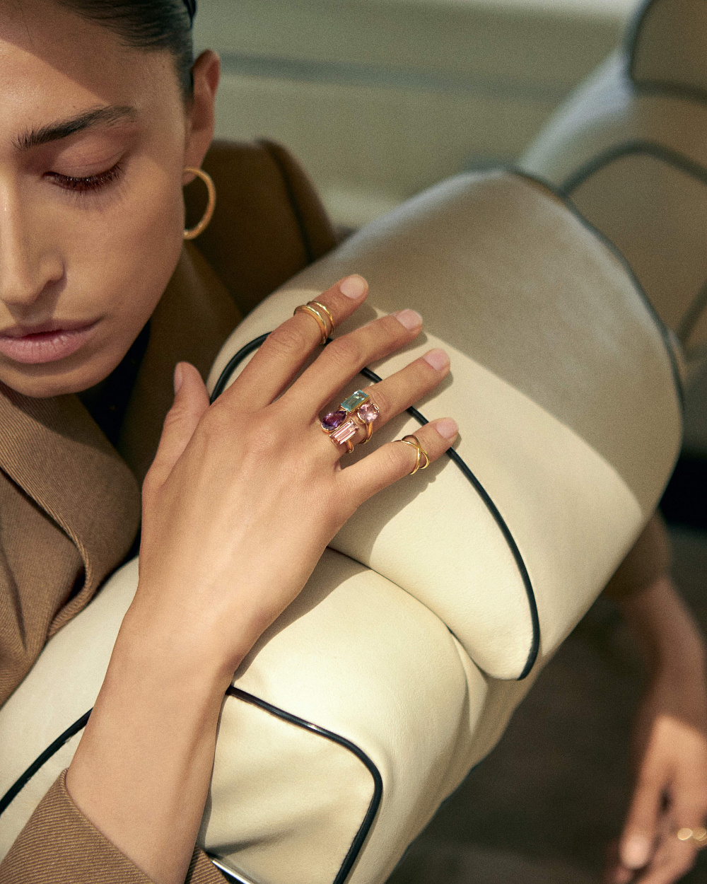 Кольорові камінці, як от жовтий цитрин, блакитний топаз, фіолетовий аметист або ж зелений онікс, — прекрасний спосіб додати образу деякої акцентності. Це можуть бути одні акуратні сережки-кільця із вставкою з синього сапфіра та діамантами, або ж сет каблучок із колекції Garden, які можна поєднувати між собою. Цей тренд прийдеться до душі справжнім поціновувачам еклектики: вони отримують нагоду підтримати свої багатобарвні образи ще і кольоровими елементами.