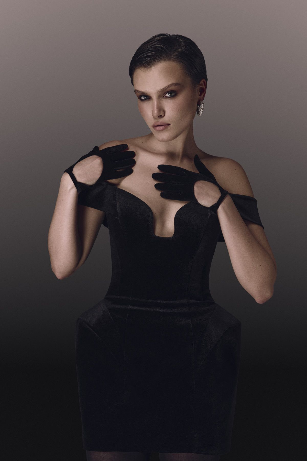 Для тих, хто обирає акцентний образ, у колекції є прозорі сукні з паєтки та сітки, які дозволяють варіювати ступінь відкритості залежно від стилізації. Альтернатива — лаконічні міні з асиметрією, оксамитові моделі з корсетною основою та сукні з чітко вибудованими плечима, які формують виразний, але не перевантажений образ.