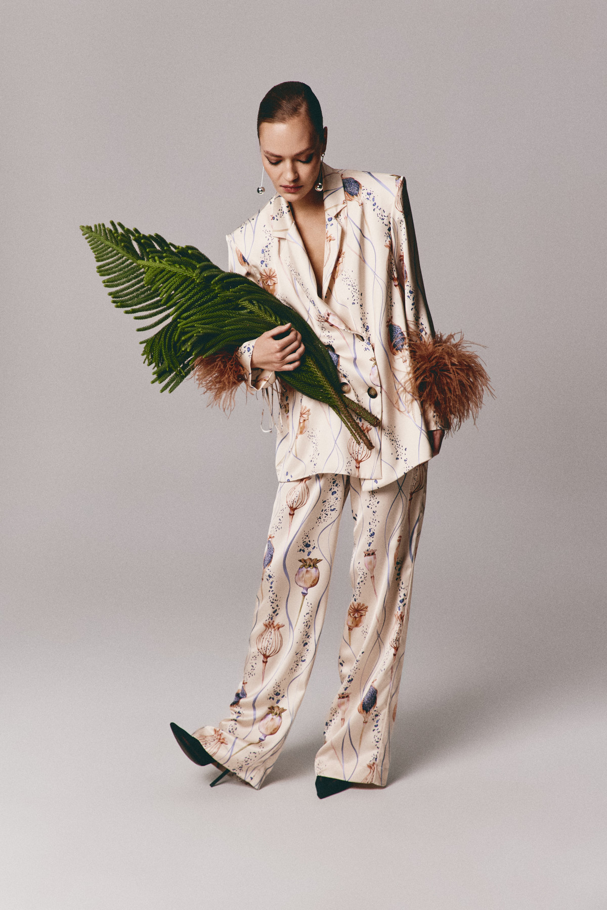 Візуальним центром капсули стає принт рожевої троянди, створений на основі фотографій живих квітів із ботанічного саду імені М. М. Гришка (бо коли як не взимку наша душа особливо вимагає квітів?). Задокументовані миті життя квітки переносяться на сатин і стають ключовим мотивом взуття — від сатинових LANA до моделей BRIANNA та LINDA з устілками з квітковим орнаментом. Класичні силуети LEONA, JERRY та CHICKALETTA отримують нове звучання завдяки глибоким зеленим, ніжно-рожевим і чорним відтінкам, а також декоративному пір’ю.