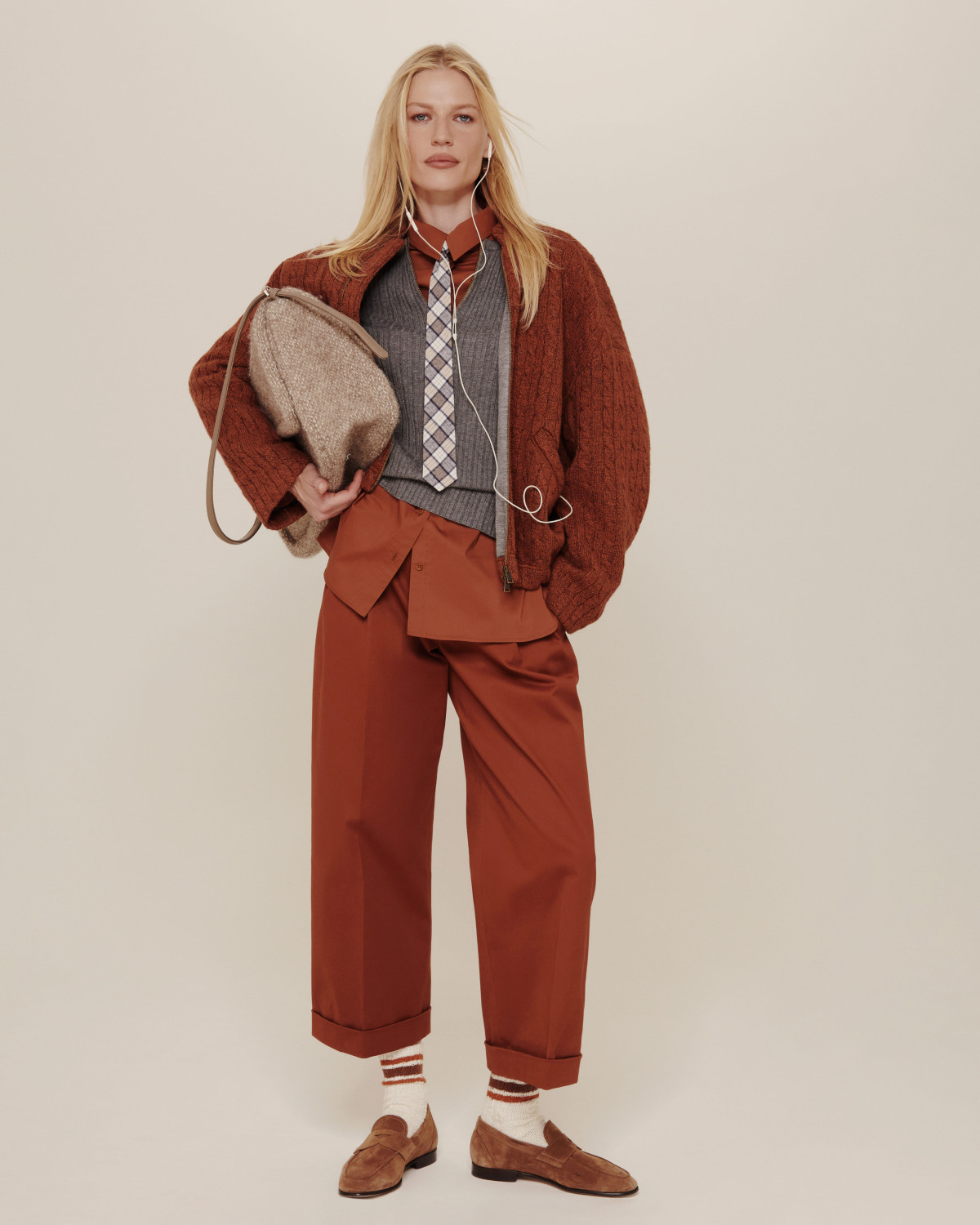 Pre-Fall 2024 від the COAT by Katya Silchenko — це переосмислення жіночного одягу в гардеробі сучасної героїні. Колекція базується на цупких натуральних тканинах деніму, кашеміру, в’язаного трикотажу та надм’якої екошкіри у природних відтінках — бежевому, сірому, теплій охрі та класичному синьому, що поєднуються з позачасовою клітинкою. Кожен предмет створений, щоб доповнювати інший, пропонуючи нескінченні варіанти для міксування та поєднання. Preppy style, обраний для стилізації лукбука, — як суміжний між практичністю та дівочою безпосередністю — один з варіантів прочитання дропу.