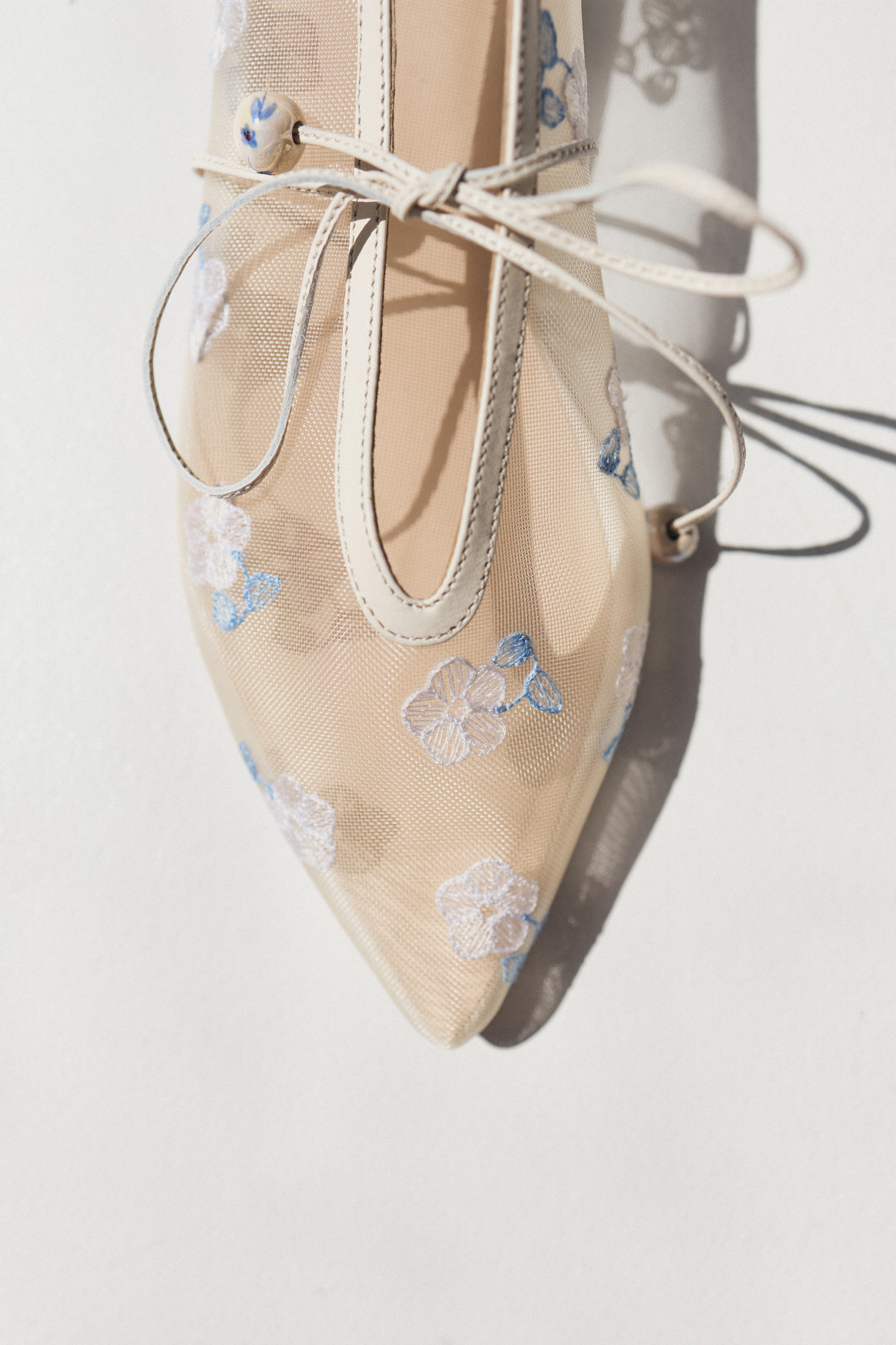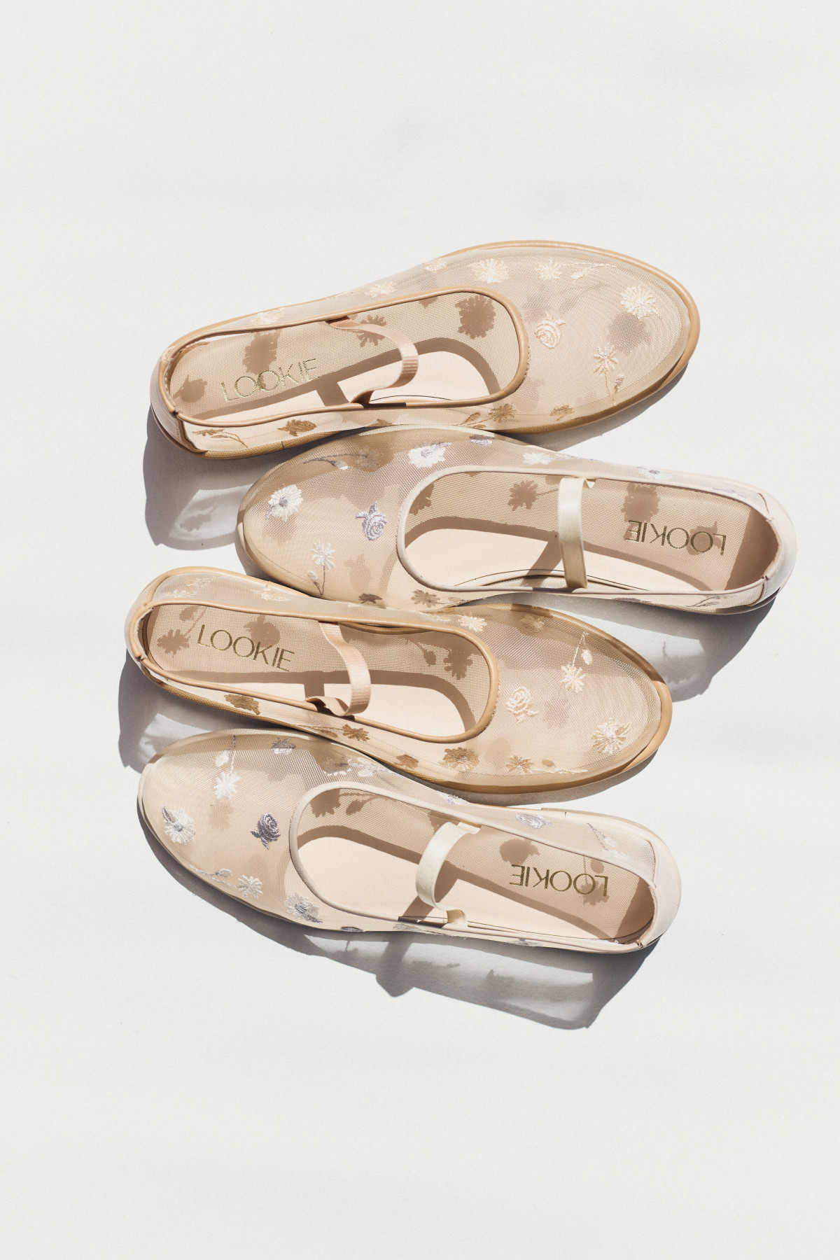 Романтичний літній дроп LOOKIE Atelier зосередився на нових варіантах уже знайомих нам бестселерів бренду. Так, на прозорих балетках з сітки з`явився вишитий розсип маленьких польових квітів, а нова модель босоніжок отримала знімну прикрасу у вигляді 3D бутону троянди. Дроп ніби звучить піснями Лани Дель Рей, з нотками романтизму та закоханості в молодість, літо та безтурботність.