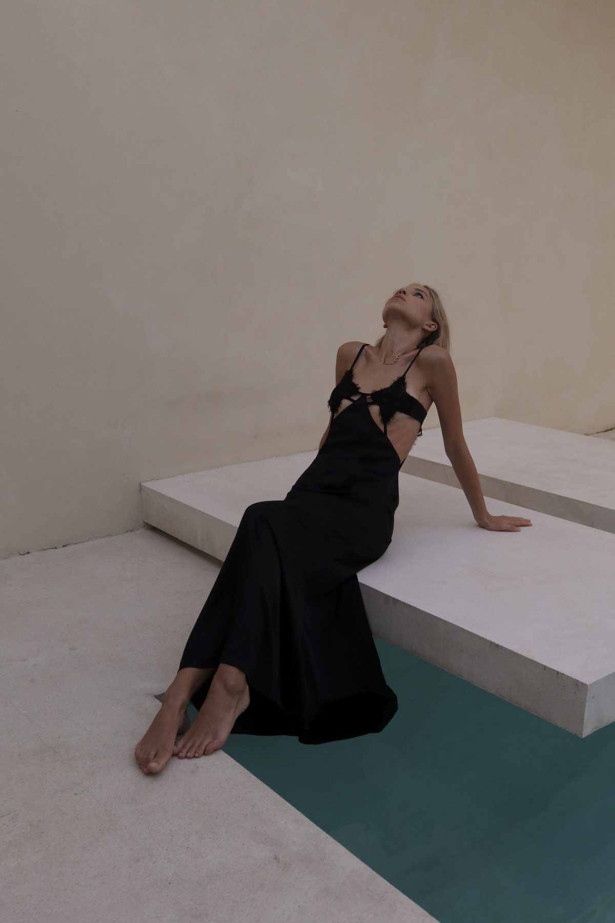 «Нічне небо стає ясним, і зорі починають сяяти божественним світлом, коли сонце сідає за обрій», — Едвін Во. Ці слова якнайкраще описують Nightfall сліпдрес, який представив бренд білизни Peach Peach.