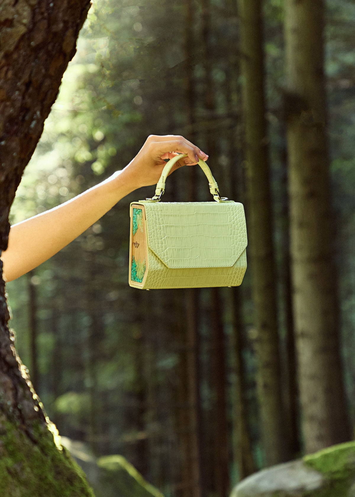 Сумка несе у собі енергію радості життя. Її настрій — це гармонія у поєднанні людського і духовного світів, насолода дарами літа: яскравими свіжими кольорами, теплом сонячного світла, прохолодою річок та водоспадів. Сумка створена з натуральної італійської шкіри Lime Croco. Бокові деталі виготовлено з деревини Карпатського ясена та прикрашено авторською композицією з напівдорогоцінного каміння бірюзи та листя папороті. Лінійка Lime Croco також включає аксесуари — фірмовий ремінь та гаманець, які разом з сумкою створюють ідеальний комплект.