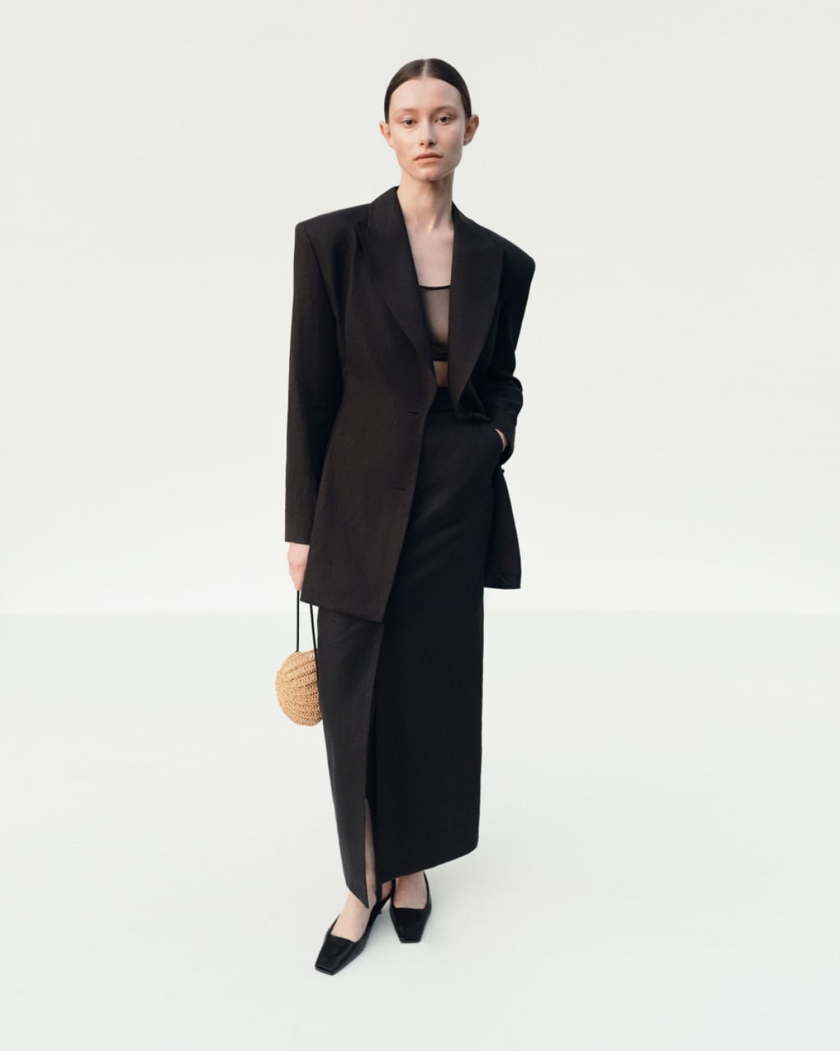 Колекція створена з натуральних лляних тканин у відтінках від землисто-коричневого до класичних білого та чорного. Вона поєднала невагомі сукні, повсякденні сети зі спідницями, костюми оверсайз, тендітні топи та базові сорочки. Особливу увагу привернула нова мінісукня, яка відтворює архітектурну форму іконічних жакетів J`amemme. Її структурний силует, що поєднав маскулінні плечі з геометричною спідницею, глибоко сягнув у фірмові коди бренду. Доповненням до морської тематики цього сезону стала сумка ручного плетіння у формі наутилусу.