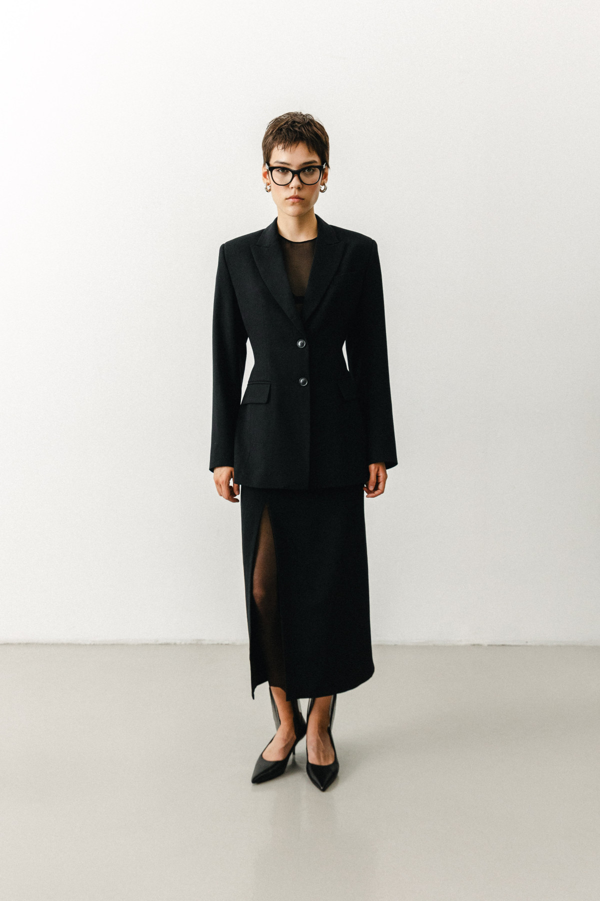 Головний акцент лінійки — це позачасова база, що стане основою гардероба. Окрім цього, бренд зосередився й на позиціях у трендовій тенденції office core, що знайшло відображення у штанах-палацо, класичних піджаках та спідницях-шортах з плісируванням.