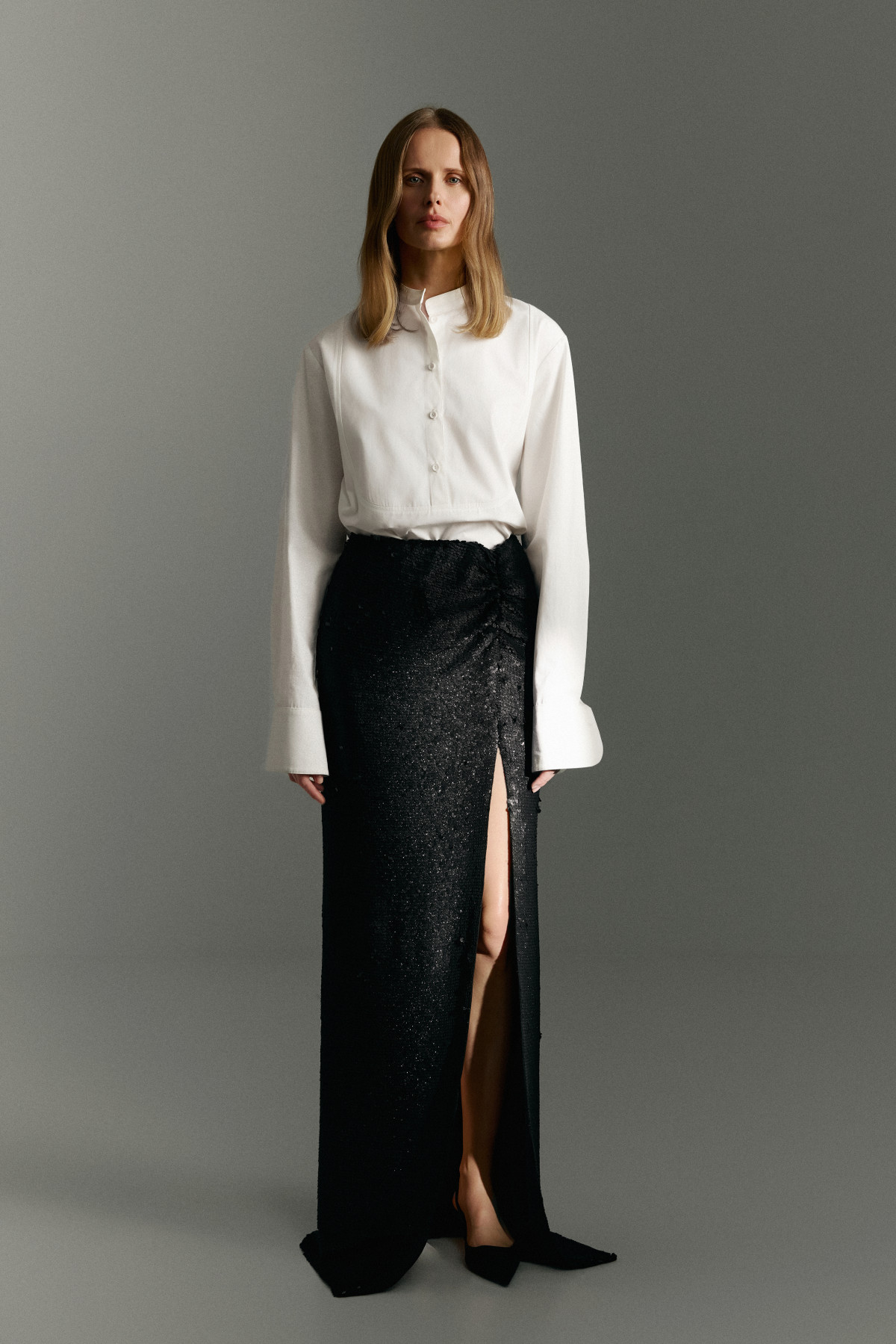 Нова колекція — історія про захоплення глибоким бургунді та теплим бежем. Сірий, чорний і молочний кольори забезпечили баланс, а мінімалізм, комфорт та універсальність залишилися незмінними елементами для бренду. До CORE WINTER увійшли сорочки з деніму, об’ємні та слім-лонги, худі, светри, штани-банани та палацо.