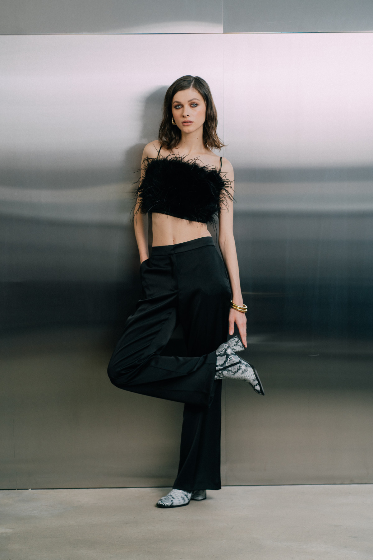 До holiday-колекції увійшли велюрові мінісукні в дорогоцінних відтінках, класичні блейзери та брюки, мініспідниці зі штучного хутра, топи з паєтками, напівпрозорі лонги та сяйливі джинси. Окрім цього, бренд також представив різдвяну білизну, шкарпетки з вишивкою, а також піжами для неї та для нього.