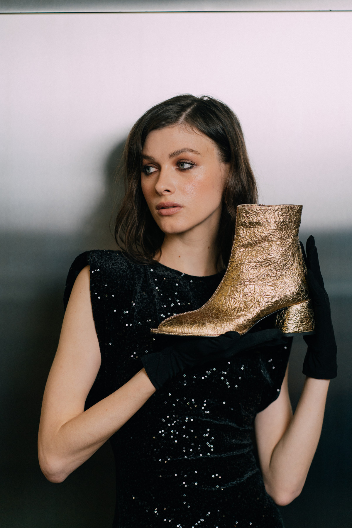Головними кольорами святкової лінійки стали сріблястий, золотистий, які по-особливому виграють на світлі через текстуровану шкіру виробу, немов запрошуючи до танцю. Також представлені ботильйони зі зміїним принтом для тих, хто цінує універсальність, адже ця позиція може виглядати як святково, так і буденно, залежно від стилізації.