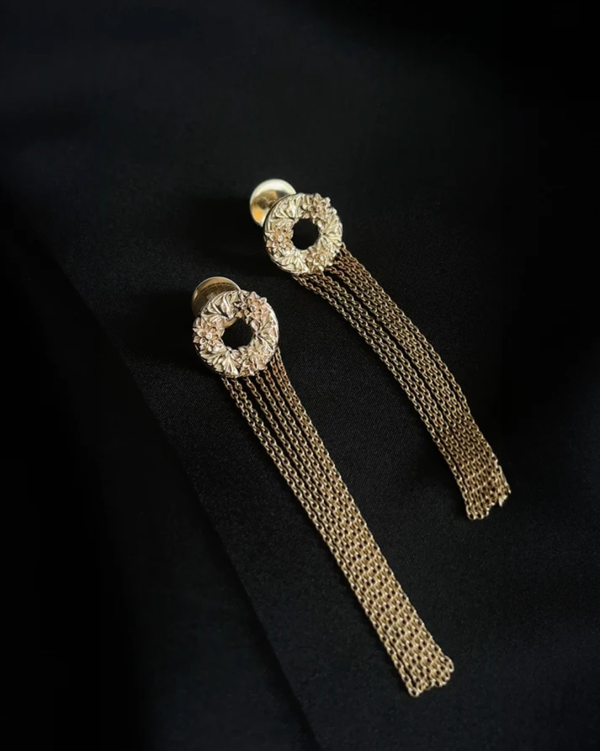 Сережки представлені у двох варіантах: підвіски з ланцюжками та пусети, виготовлені з золота 585-ї проби та срібла 925-ї проби. У дизайні використано мотив вінка, який символізує весну та відродження — ключові елементи колекції. Вони також несуть у собі захисний зміст згідно з традиційними уявленнями про обереги.