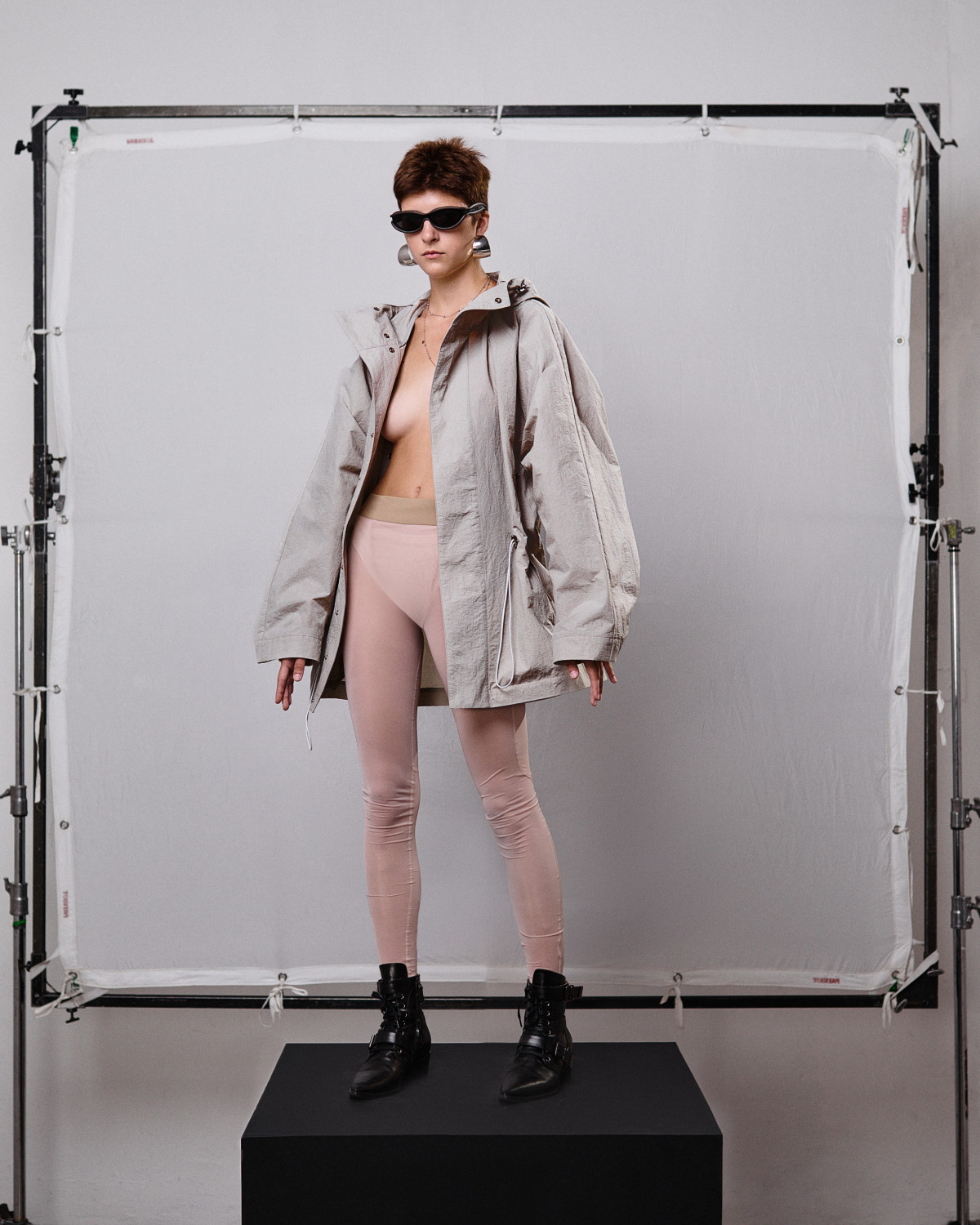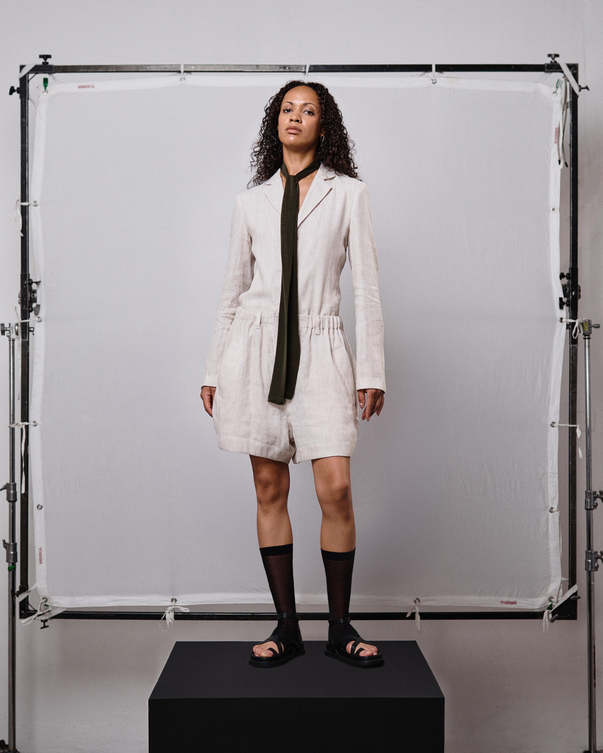Силуети колекції сміливі, але при цьому зручні для носіння, створені, щоб рухатися разом з носієм, а не обмежувати його. Від об`ємного верхнього одягу, який обгортає, наче захисний щит, до прозорих шарів, які відкривають рівно стільки, щоб заінтригувати, Pulse переосмислює ключові речі, як-от куртку та об’ємний жилет із заниженою талією, м’який лляний піджак у поєднанні з шортами округлої форми й структуровані бавовняні піджаки з шортами середньої довжини. Контраст ще більше підкреслюється жіночною, витонченою лінійкою, яка включає приталені топи та сукні корсетного крою, а також грайливі плавні силуети. Кожен виріб наділений духом життя в теперішньому моменті.