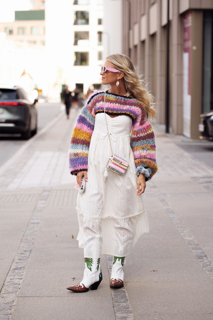 Перші вересневі дні, як би сонце не вводило нас в оману, не залишають жодних сумнівів: зворотній відлік для лляних речей розпочато, натомість в свої права вступає комфортний і затишний трикотаж. Від напівпрозорих лонгслівів, які ще встигаємо поносити з білими бермудами й ковбойками; піжам і джемперів замість шарфів, накинутих на плечі; жилетів як середнього шару між сорочкою та жакетом; до суконь довжини максі в парі з грубими ботильонами та цупких плетених костюмах, в яких можна сміливо зустрічати осінню прохолоду. Якщо ви тільки формуєте свою осінню трикотажну капсулу й шукаєте натхнення для майбутніх стильних комбінацій, наша добірка від зірок streetstyle має стати вам в нагоді.