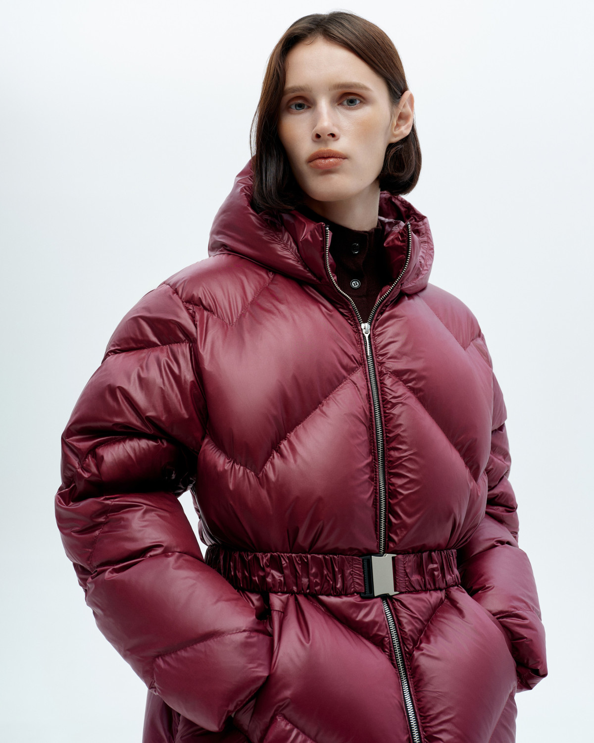 На противагу оверсайзу деякі бренди представили більш елегантні моделі пуховиків із поясами. Такі варіанти створять витончений силует і підкреслять лінію талії. Так, вони чудово поєднаються не лише з брюками, а й зі спідницями міді та максі, а також сукнями. Свої ідеальні пуховики з поясами шукайте в лінійках Marchi, The Warm та IENKI IENKI.