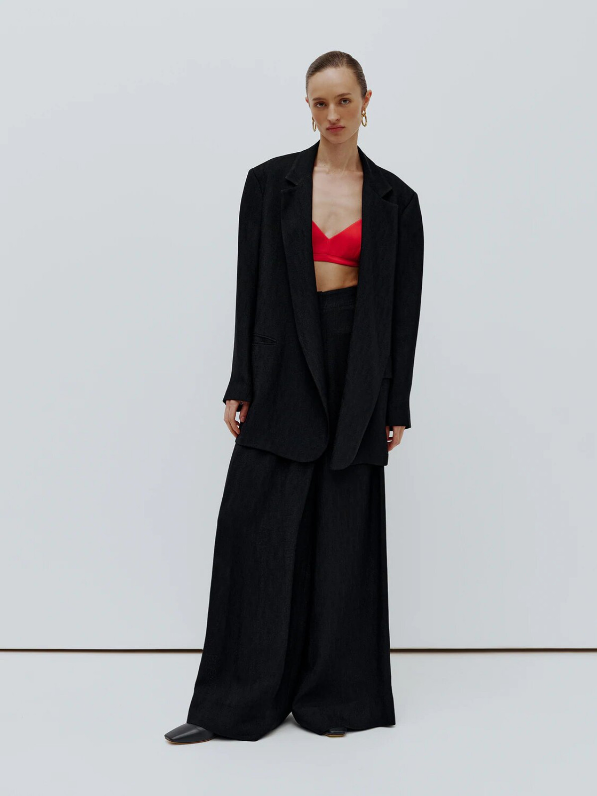 Жакет+кроп-топ+брюки палаццо