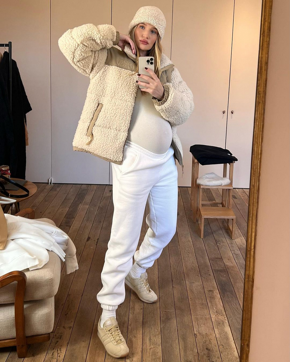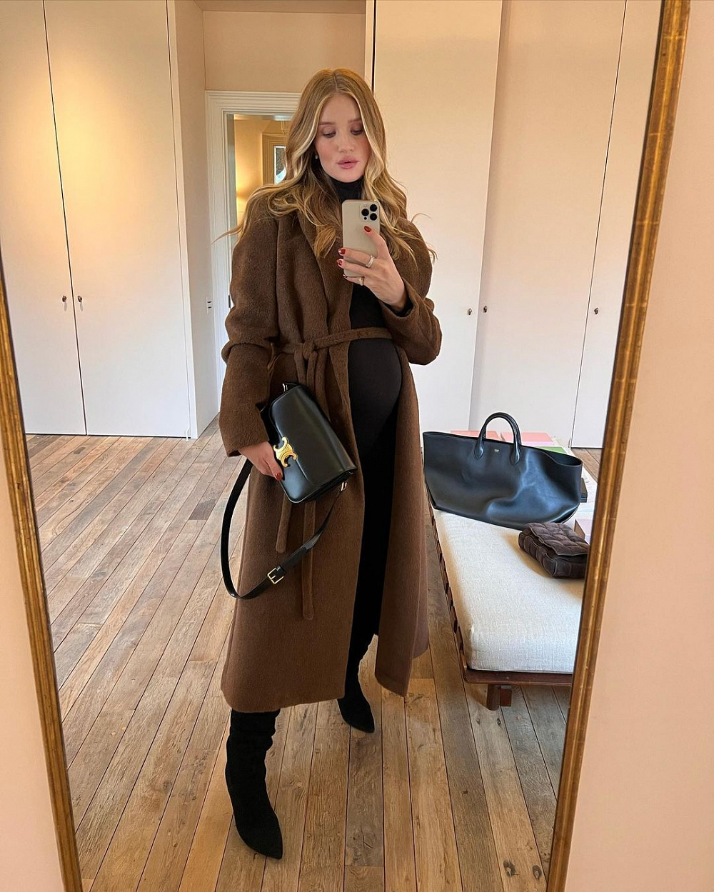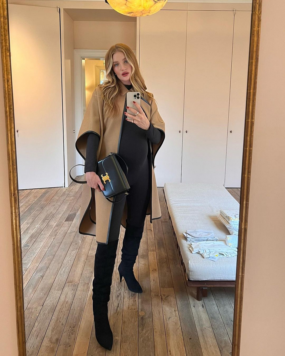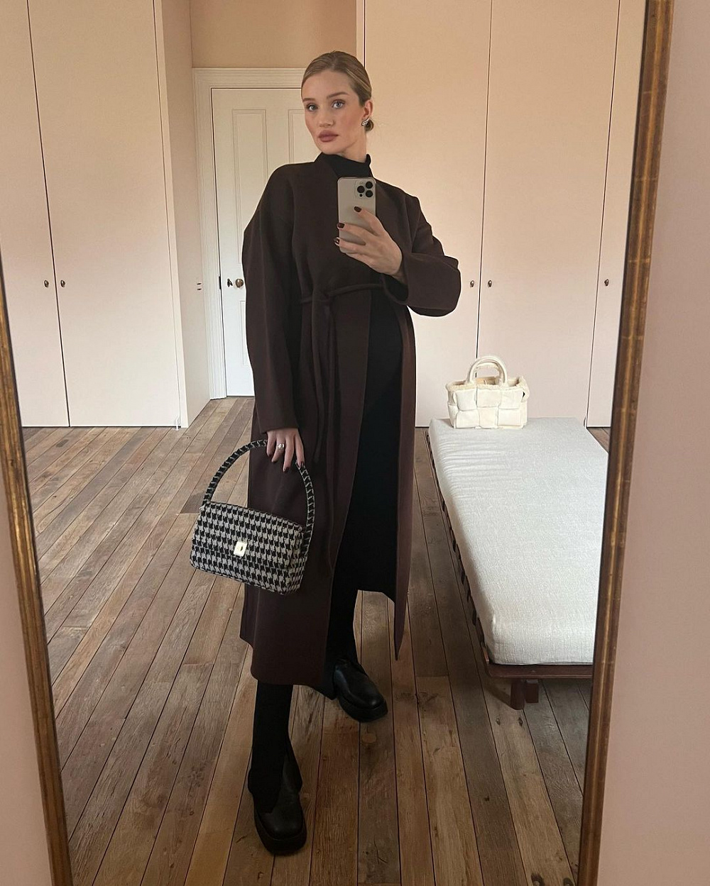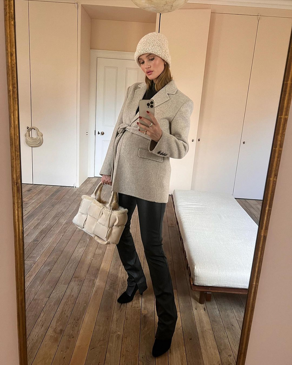 Даже в морозные дни Роузи Хантингтон-Уайтли не изменяет себе и выбирает в стильные образы. Сейчас модель находится на третьем триместре беременности и с присущим ей чувством стиля умело выбирает аутфиты подходящие не только для погоды, но и к своему положению.
