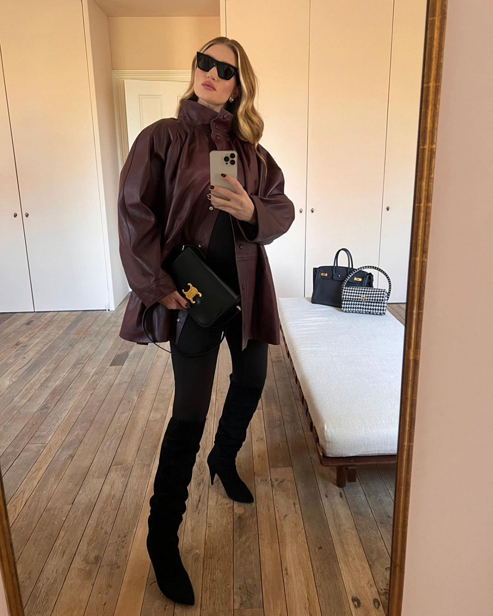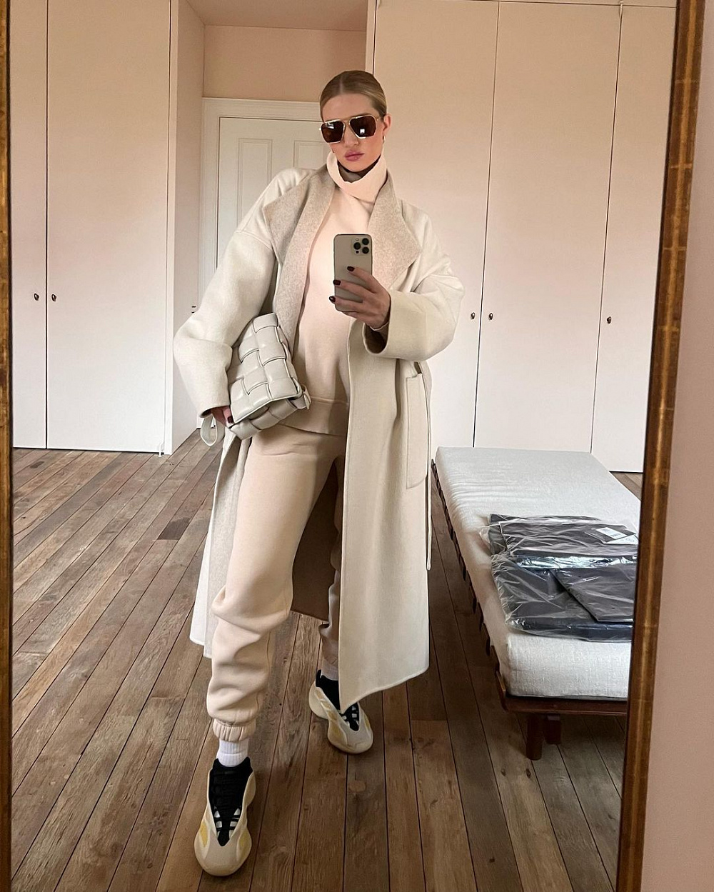 Этой зимой Роузи советует отдать предпочтению бежевым светлым оттенкам, свободным силуэтам и классическим вещам, вроде трикотажных платьев, длинных пальто, жакетам и кейпам. Впрочем, не отказывает модель себе в удовольствии надевать и удобные спортивные костюмы, комбинезоны и кроссовки. А вот среди брендов, которые пришлись в этом сезоне модели по вкусу, можно увидеть Celine, Loewe, Khaite, Saint Laurent.