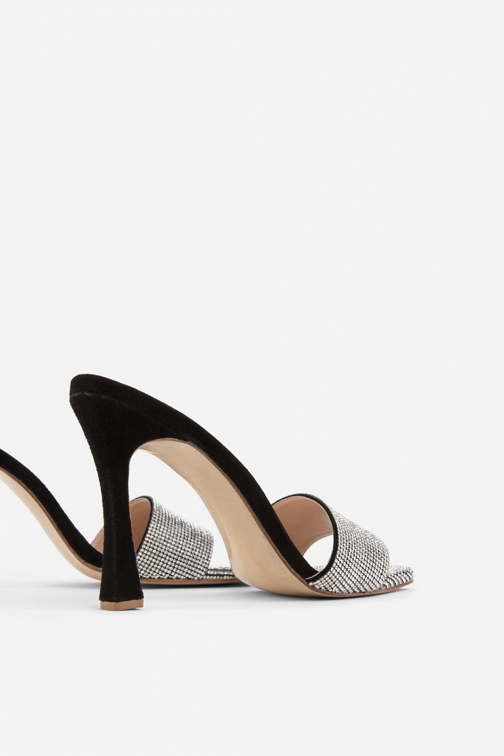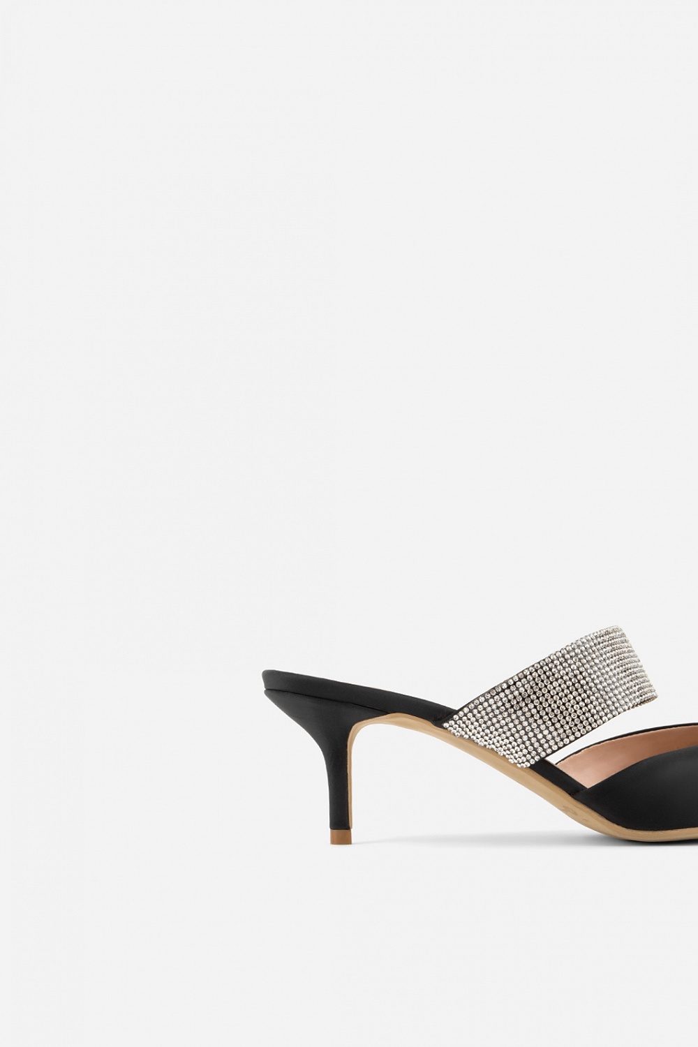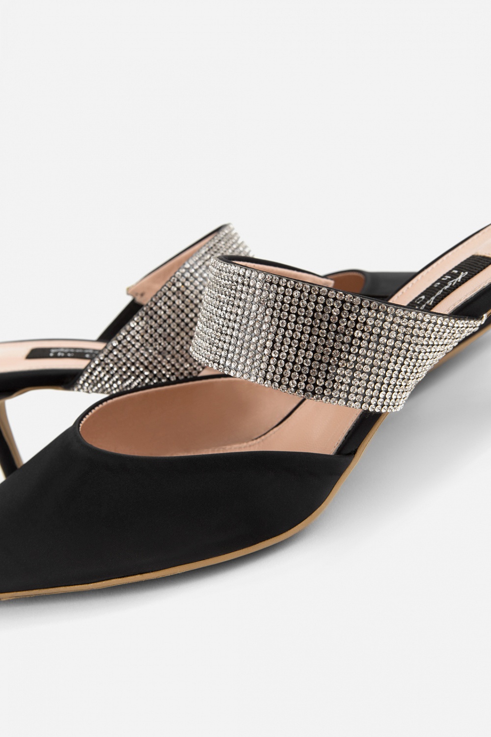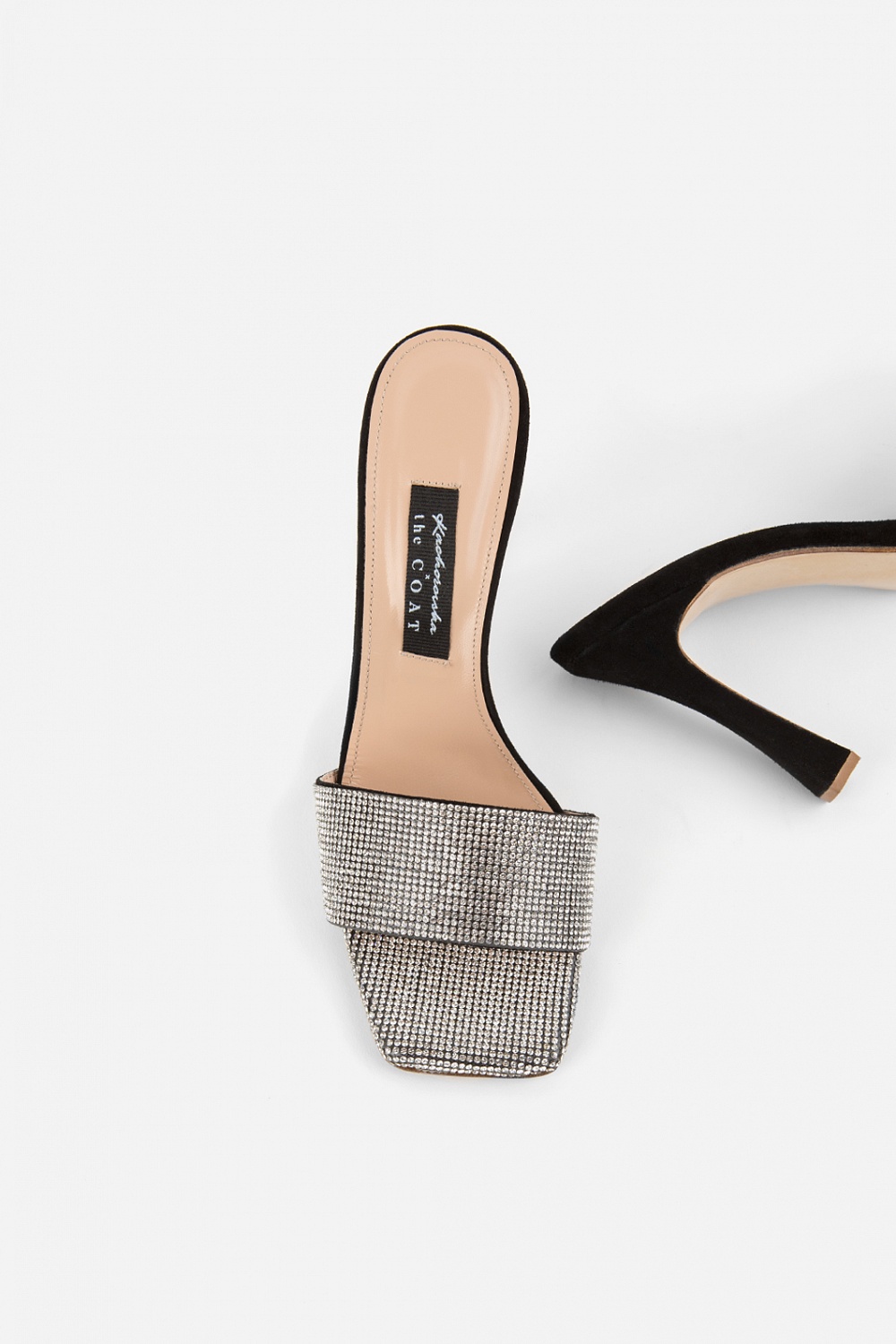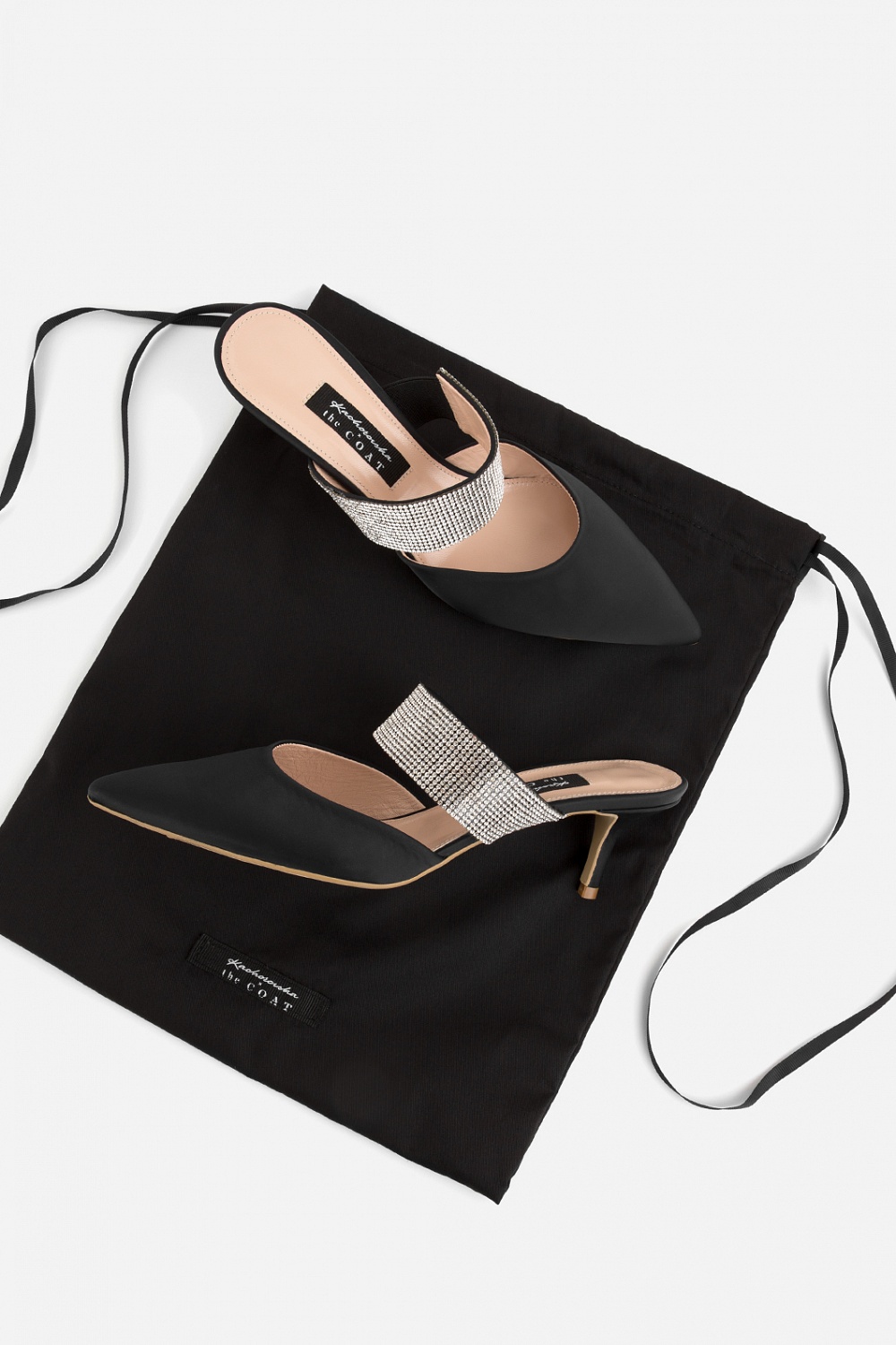 Вдруге результатом співпраці двох українських брендів стали 3 моделі взуття, які втілюють в собі майстерність Kachorovska та знакові елементи the Coat. Босоніжки двох кольорів (чорний та нюдовий), чорні мюлі і сабо – все взуття пошите з використанням полотна з камінням.