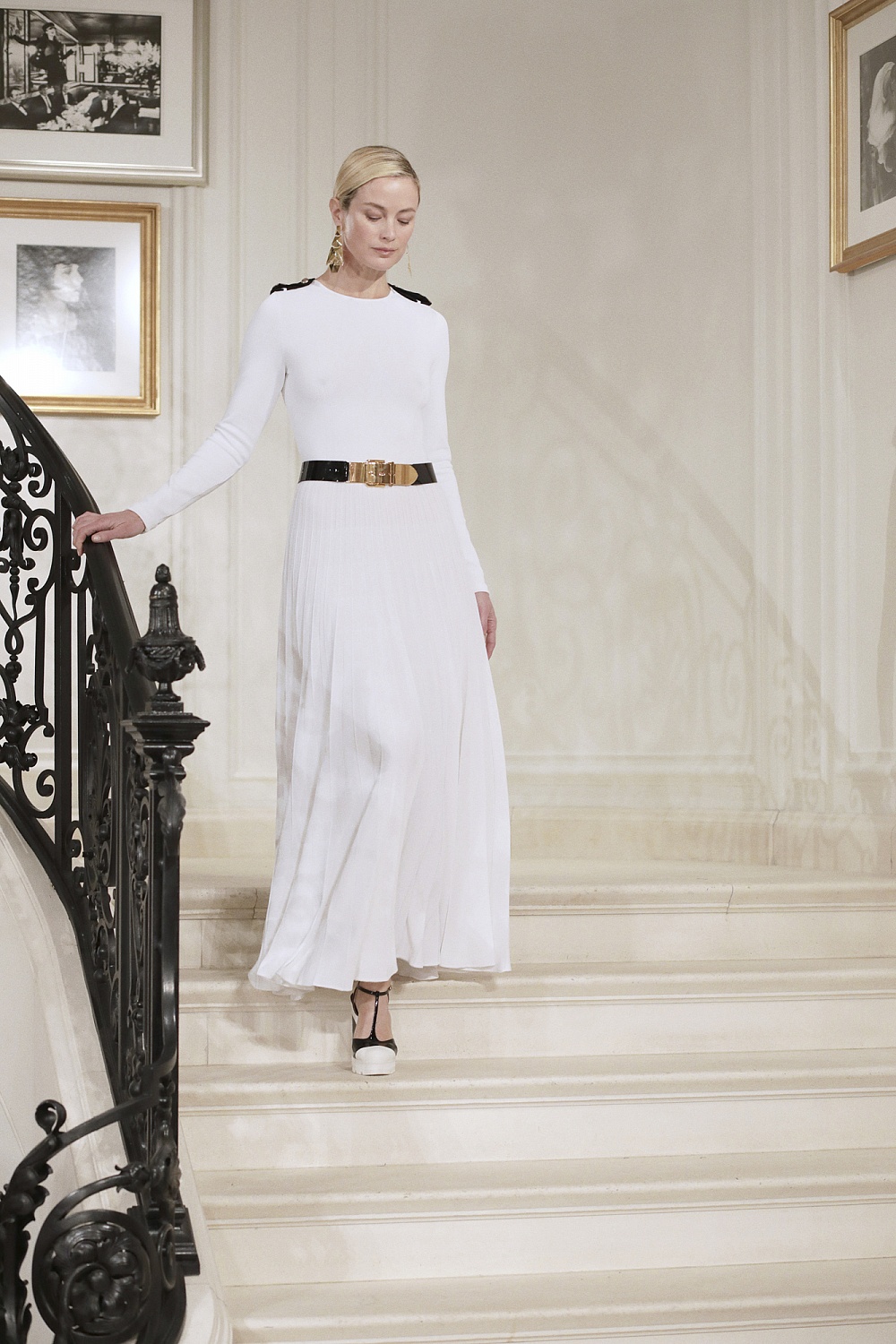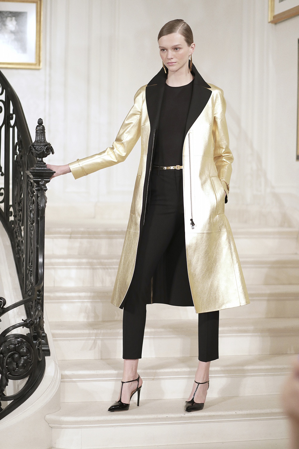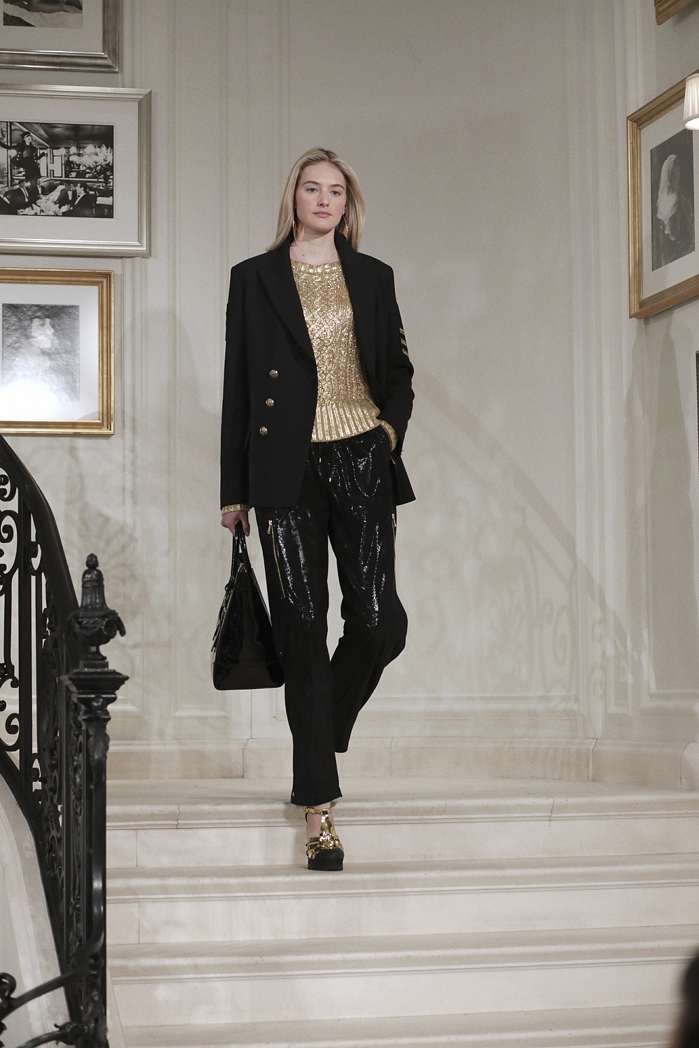 Вчера вечером в ресторане на Мэдисон Авеню состоялся показ новой коллекции Ralph Lauren. Модели, среди которых Белла Хадид и Тейлор Хилл, ходили по импровизированному подиуму между обеденных столиков, а гостям подносили свежую выпечку и кофе. Будущей осенью дизайнер предлагаем носить нам элегантные смокинги и роскошные коктейльные платья в духе золотой эпохи Голливуда. Золото, надо сказать, было везде: и на кожаных жакетах, подчеркивающих талию, и на изящных босоножках на шпильке, а также на сияющнм плаще с длинном шлейфом.