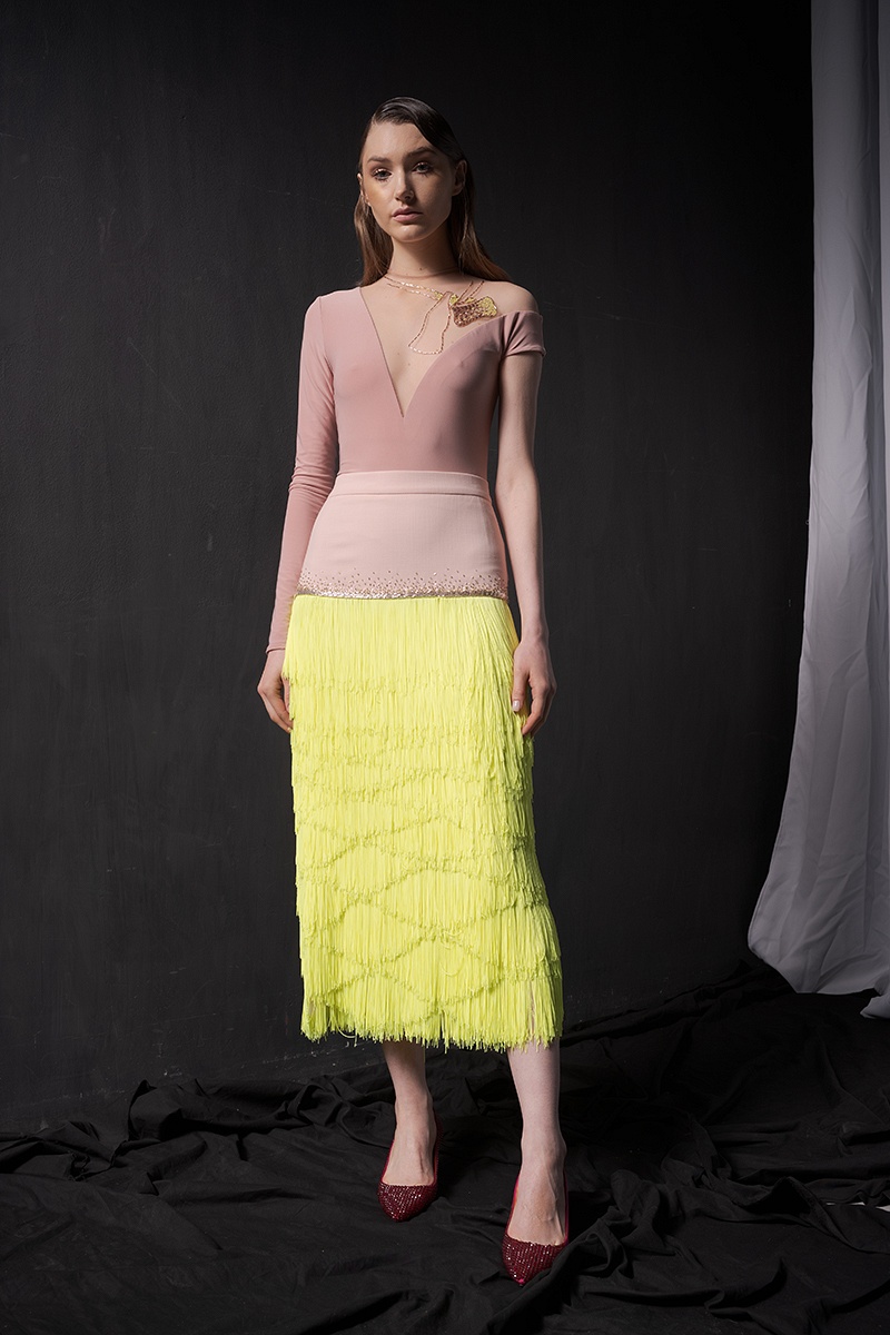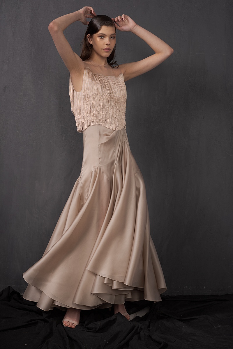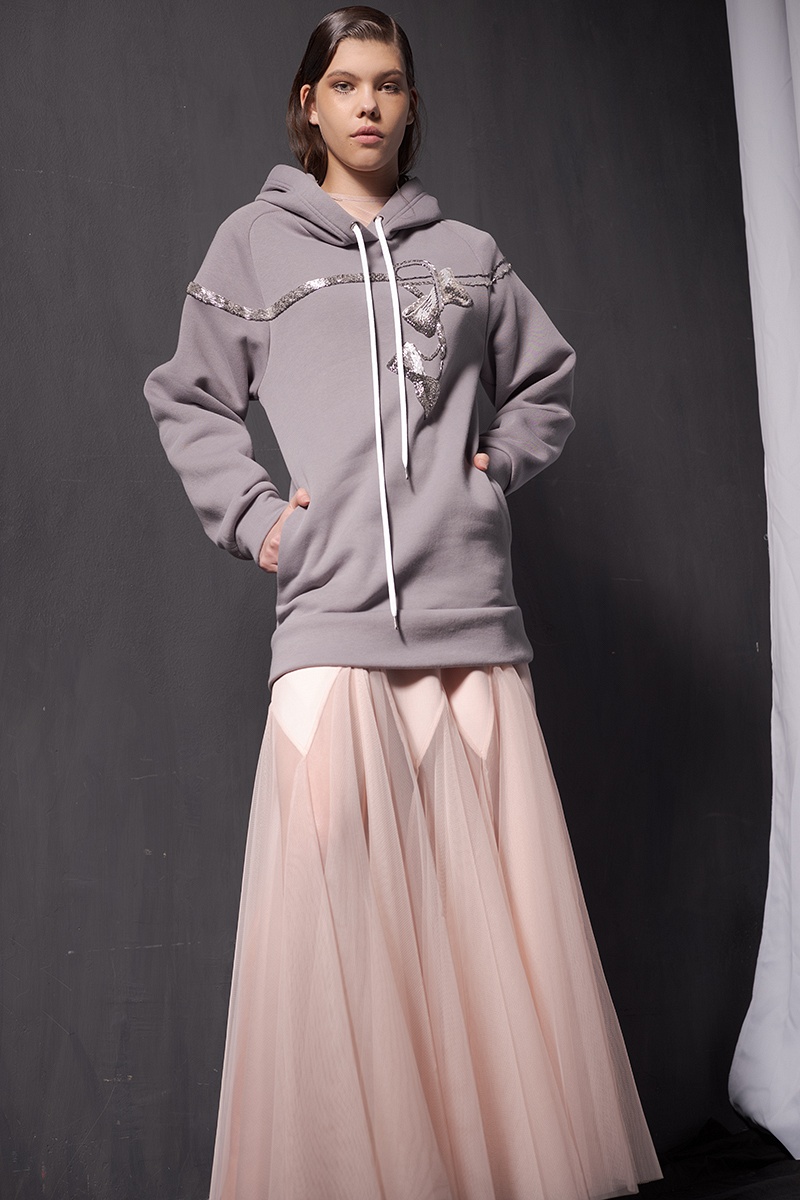 В этом сезоне дизайнер Анна Арутюнова исследует одну из главных своих зависимостей — бальные танцы. В прошлом многократная чемпионка Украины и мира трансформирует спортивные воспоминания в невесомые юбки и облегающие трико, силуэтные платья и пальто, украшенные ручной вышивкой по мотивам танцующих пар.