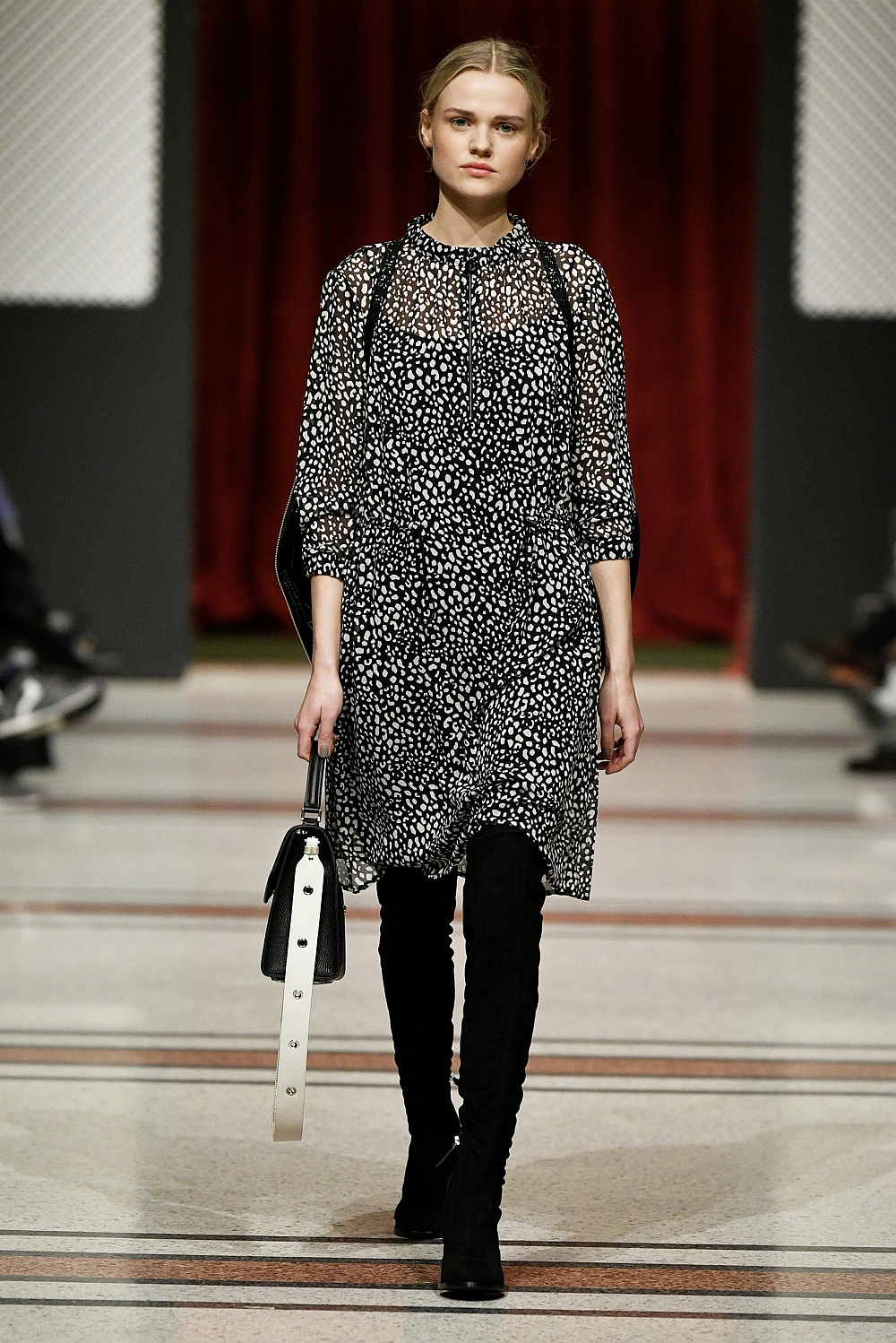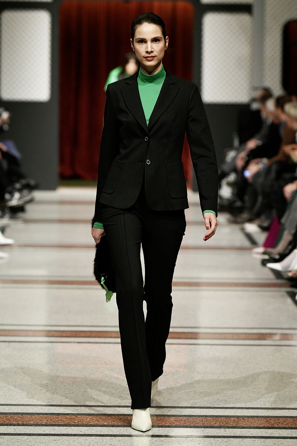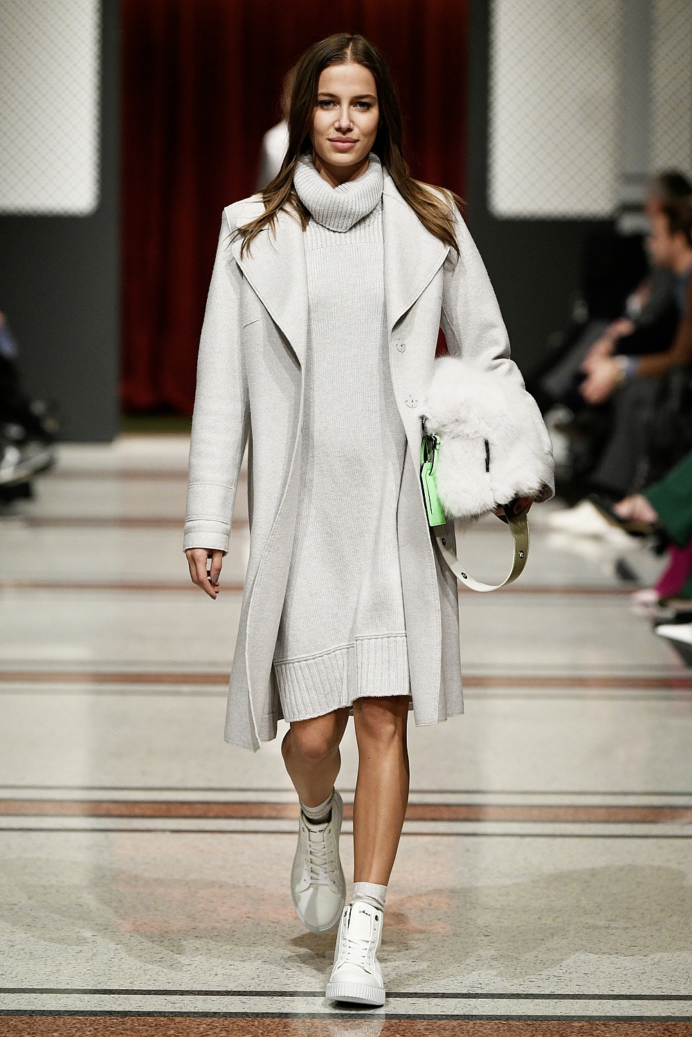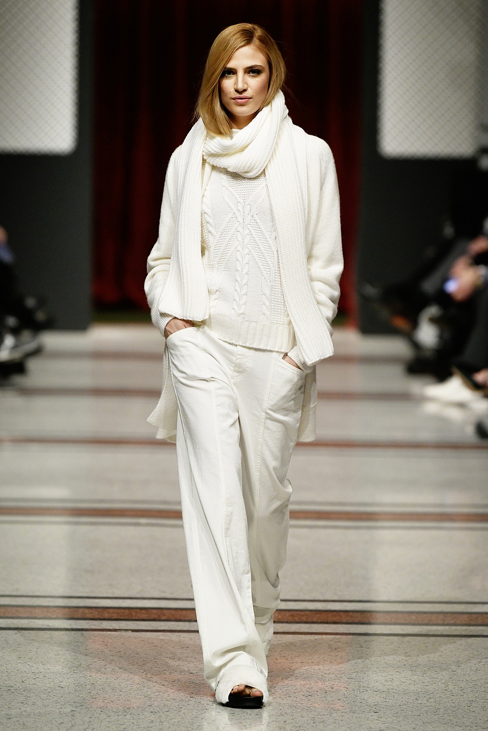 Железнодорожная станция – это место случайных встреч и отправная точка для путешествий. Здесь можно увидеть девушек в одежде совершенно разных стилей: элегантный бизнес-лук для тех, кто спешит в офис, спортивный – для отпуска на горнолыжном курорте, уличный – для прогулки по городу или уточненный вечерний – для похода в театр. Тема вокзала стала главным вдохновением для создания образов новой осенне-зимней коллекции Marc Cain. Шоу под девизом «Meet you at the train station» прошло 15 января в Берлине. Абстрактная атмосфера железной дороги была перенесена на подиум: впечатляющий поезд обрамлял арку, из которой выходили модели. А большие часы, привокзальный фонарь, чемоданы и специальный орнамент стали частью обстановки.