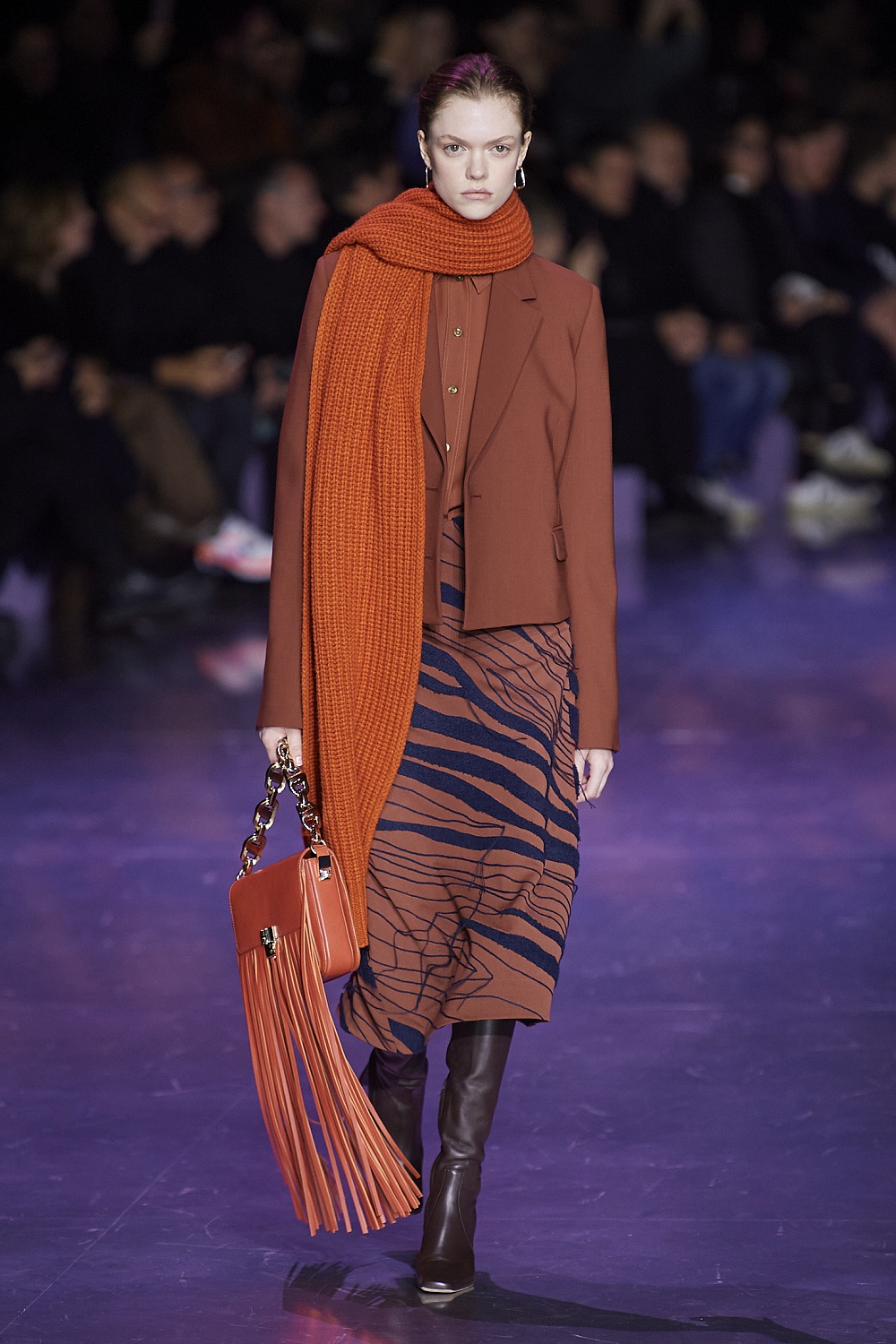 Череда отлично скроенных пальто, платья со сложной драпировкой, объемные брючные костюмы, уютный трикотаж – новая коллекция «Generations» немецкого бренда Boss точно придется по душе девушкам, которые ищут свою модную униформу на каждый день. Отдельного внимания заслуживает цвет: помимо базового черного, серого и бежевого в коллекции присутствуют лавандовый, оранжевый и коричневый. Их предлагают сочетать между собой или составлять монохромный total look.