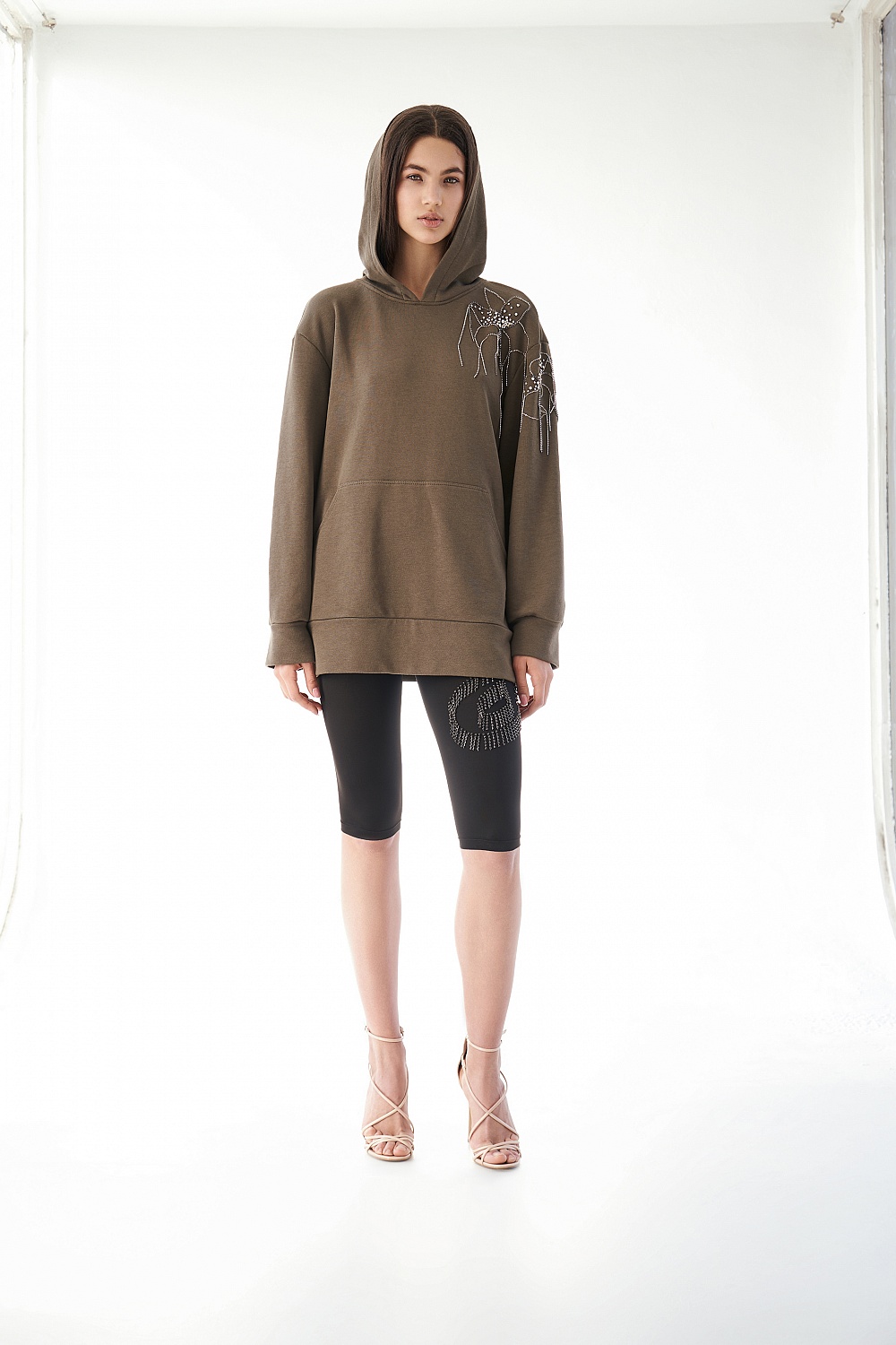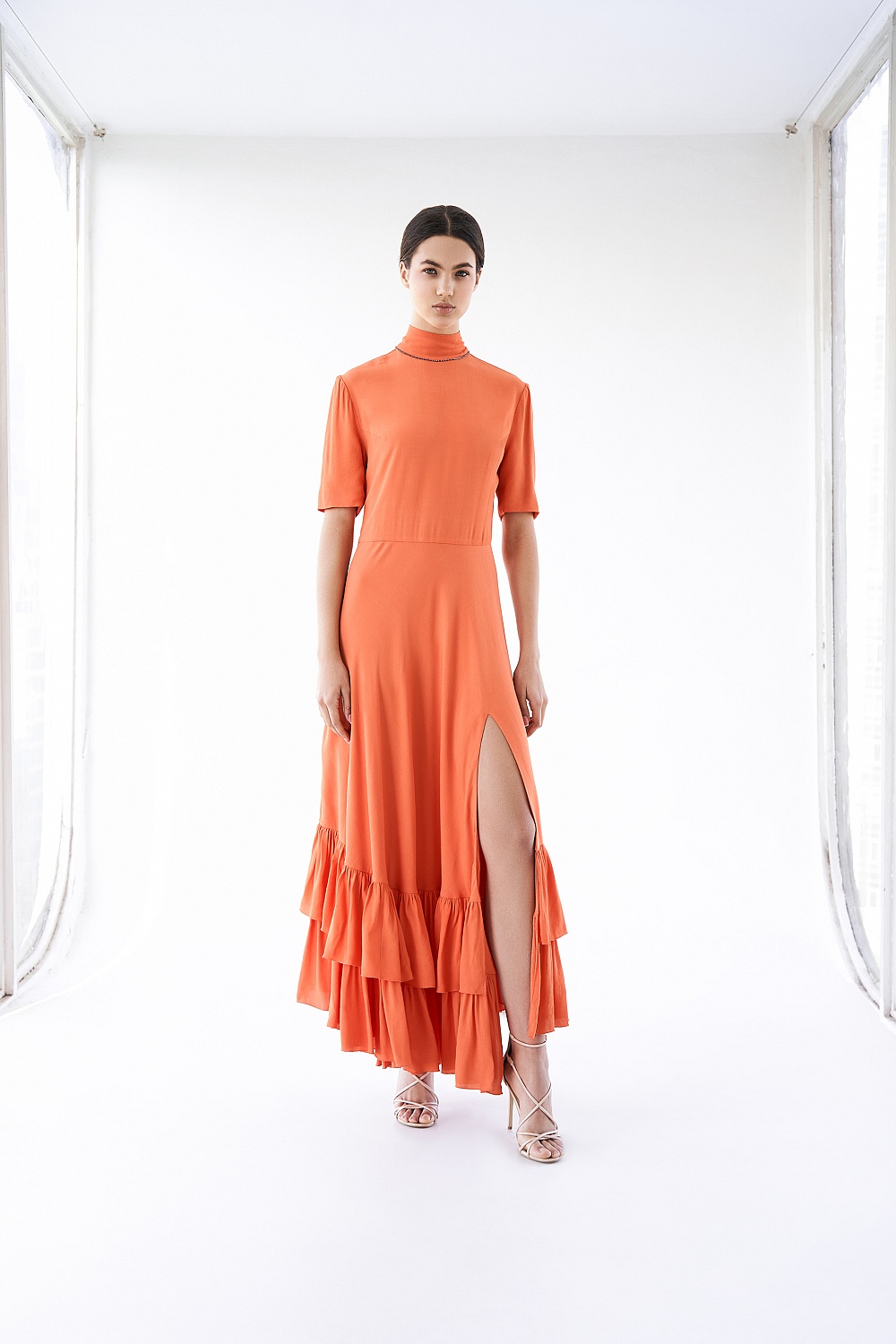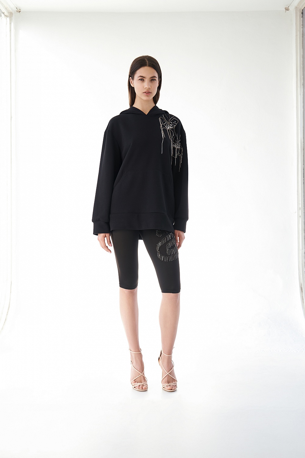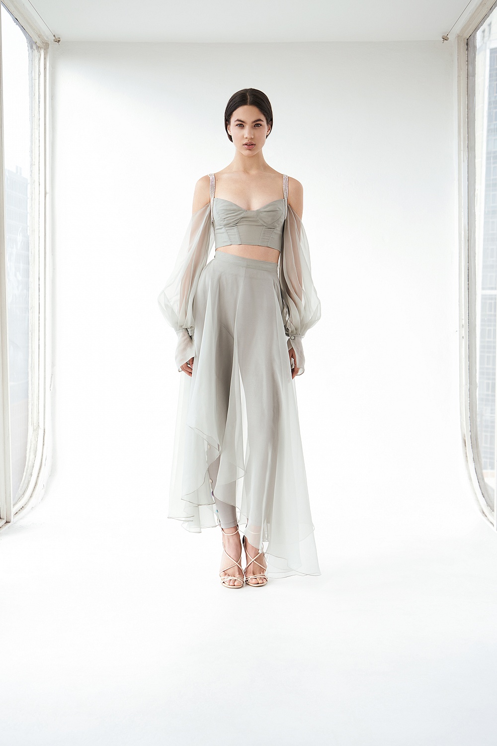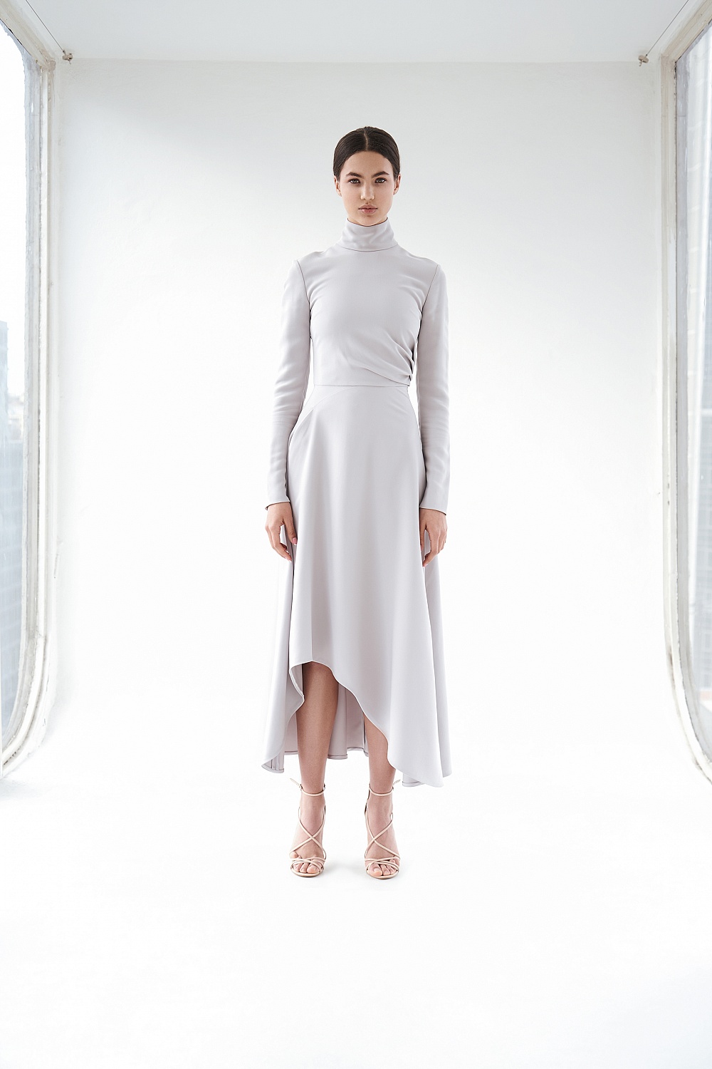 В весенне-летней коллекции Arutiunova удобный стиль athleisure словно танцует в паре с четкой структурностью костюмного кроя, к примеру, худи с вечерним платьем, а джерси с нарядным шелком, плотный трикотаж с прозрачной органзой. Мотив выхода из тени под свет софитов подчеркивает сочетание открытых солнечных цветов: лазурного, кораллового, мангового, багрового, бирюзового, с богатой гаммой оттенков белого, серого и черного.