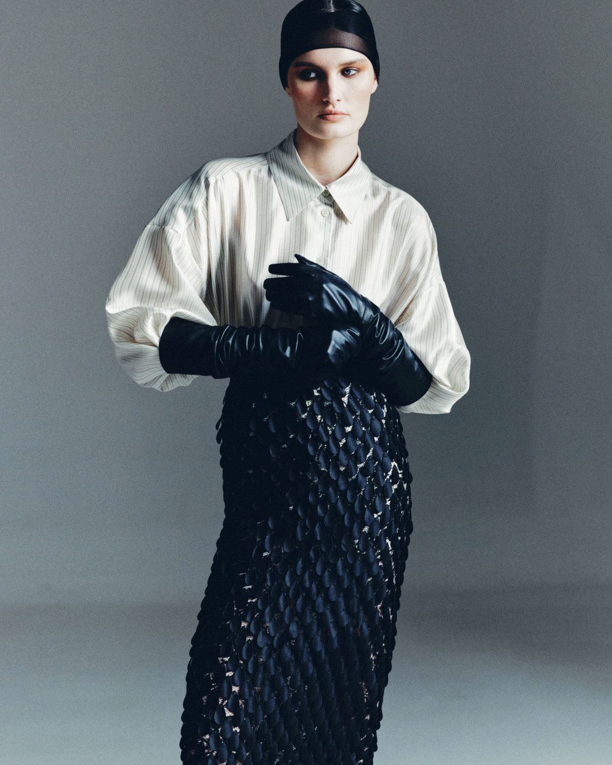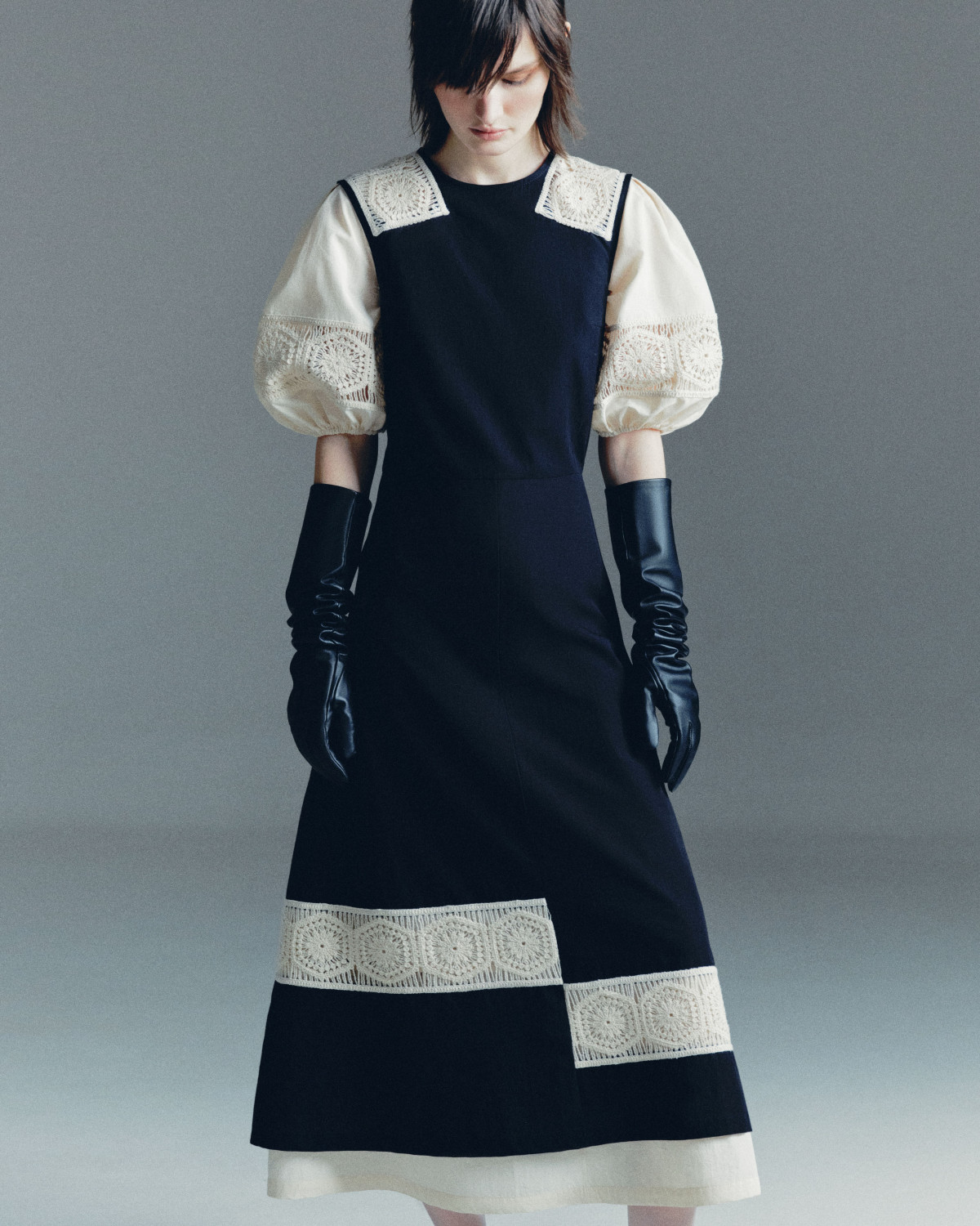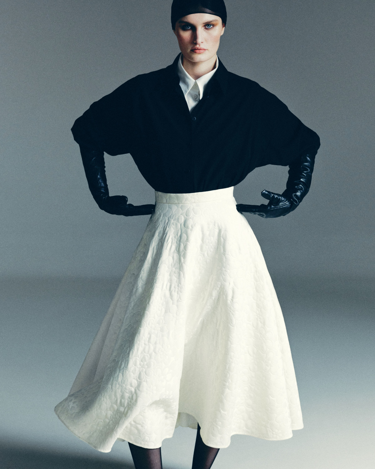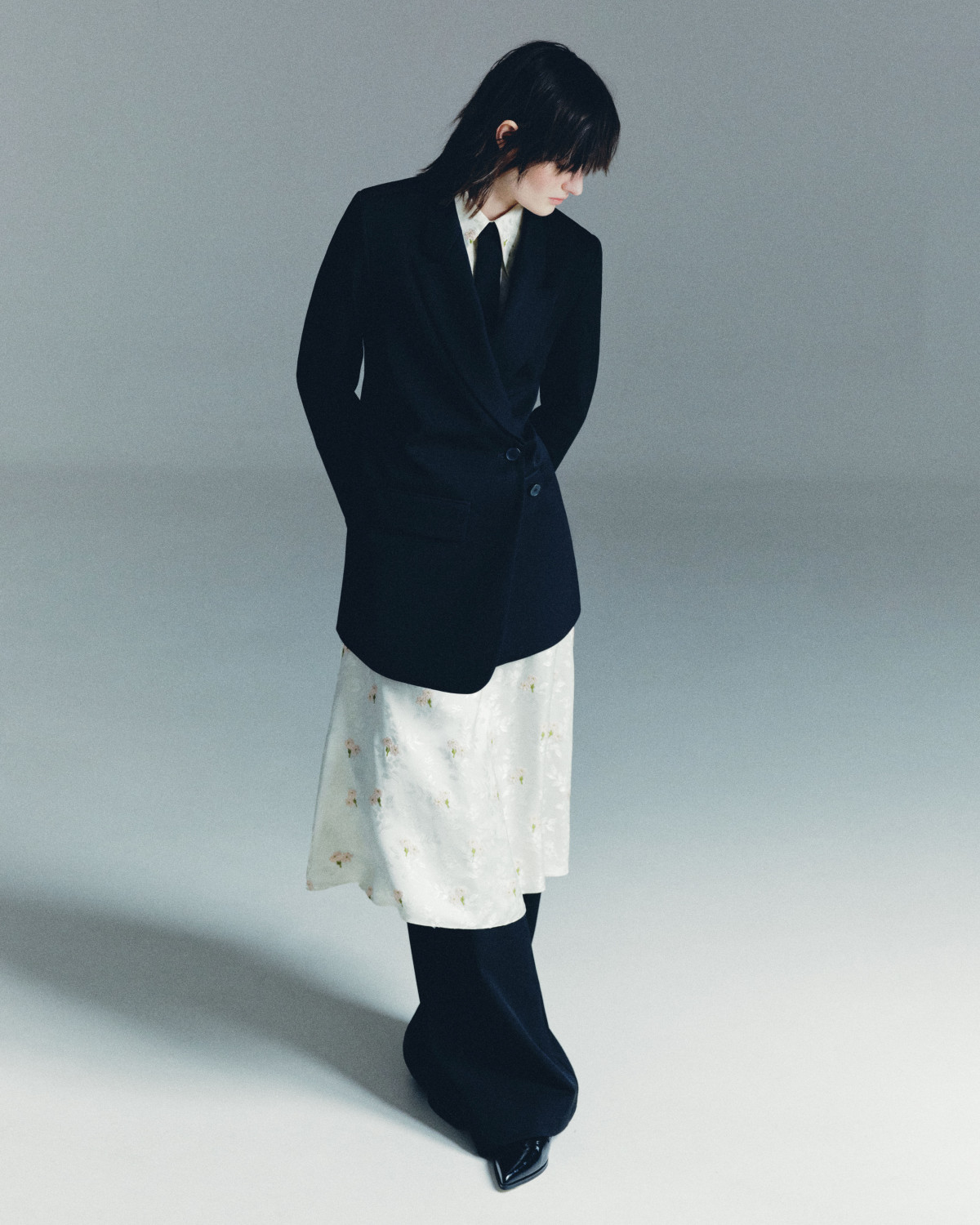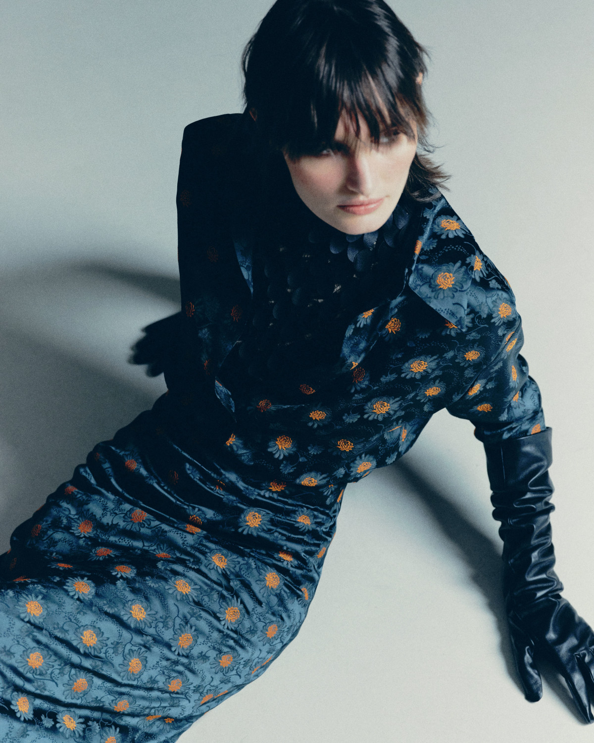Серед окремих деталей виділяються об’ємні рукави, які надають скульптурності формам на тлі ретельної деталізації та різноманітності фактур тканин. Знаковий принт з квітами каштанів в поєднанні з вечірніми елементами та елегантна сучасна стилізація стали свіжим поглядом на традиційну естетику бренду.