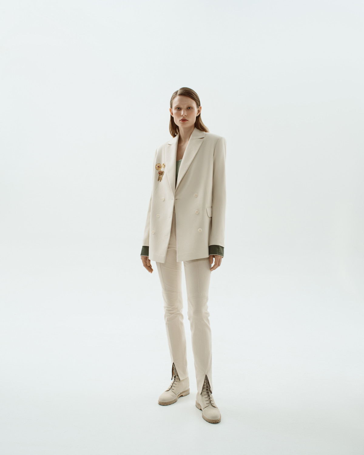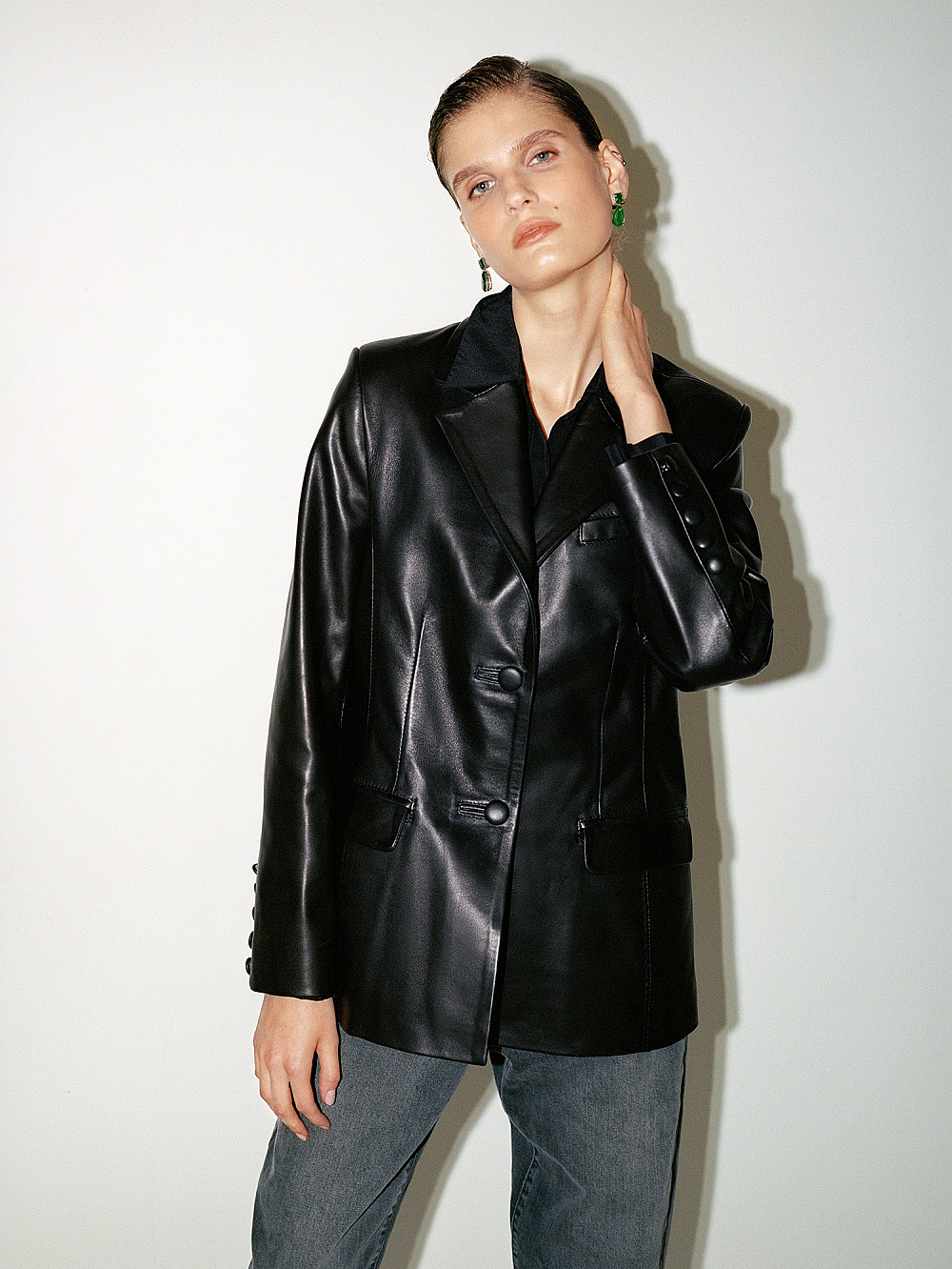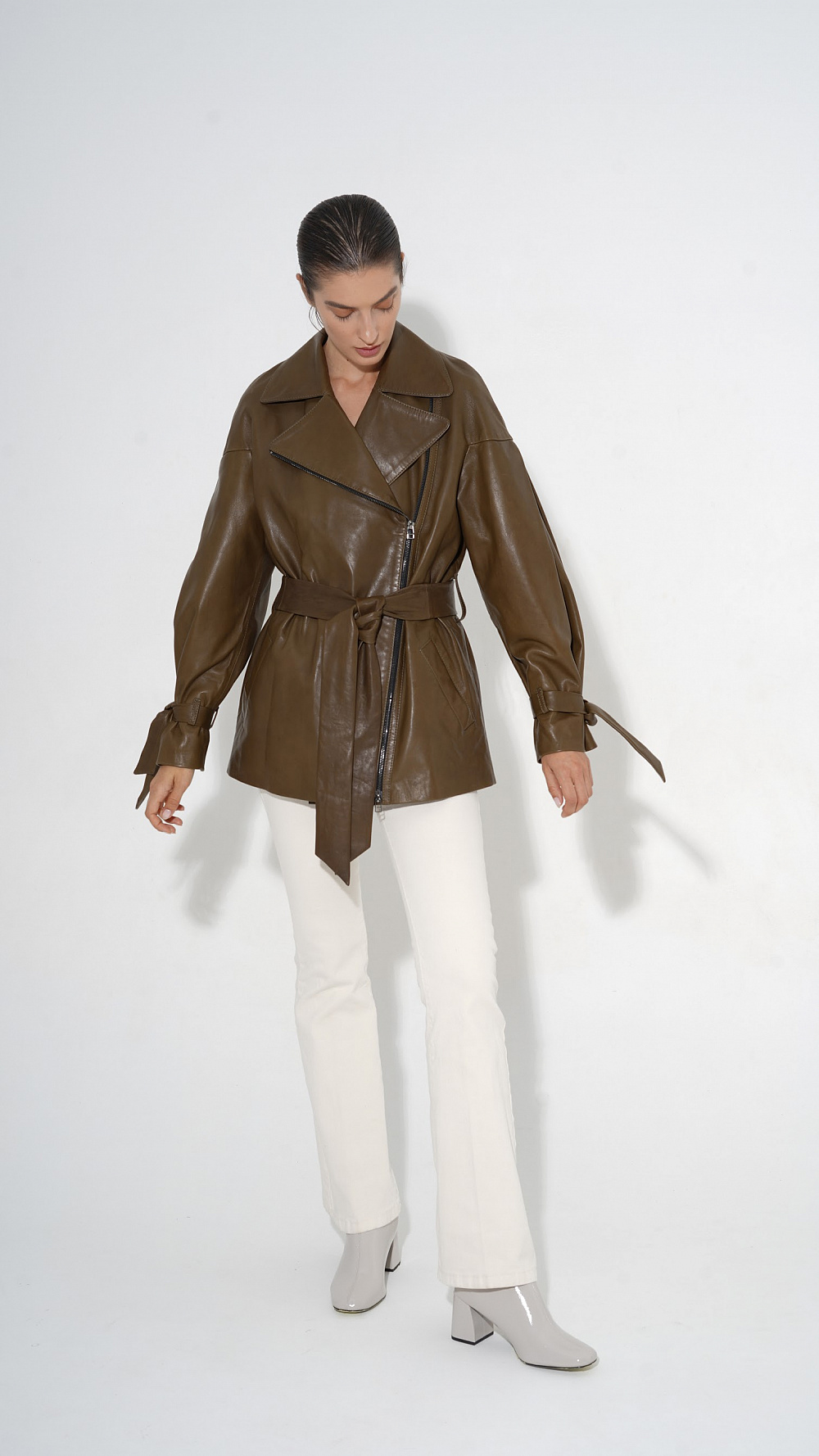 Скидка на осеннюю коллекцию до 70%, на архивные коллекции до 80%. Кожаный блейзер цвета хаки с поясом: вместо 25 920 грн — 7 776 грн. Молочное кожаное пальто: вместо 45 090 грн — 18 036 грн. Черный кожаный жакет: вместо 23 760 грн — 9 504 грн.