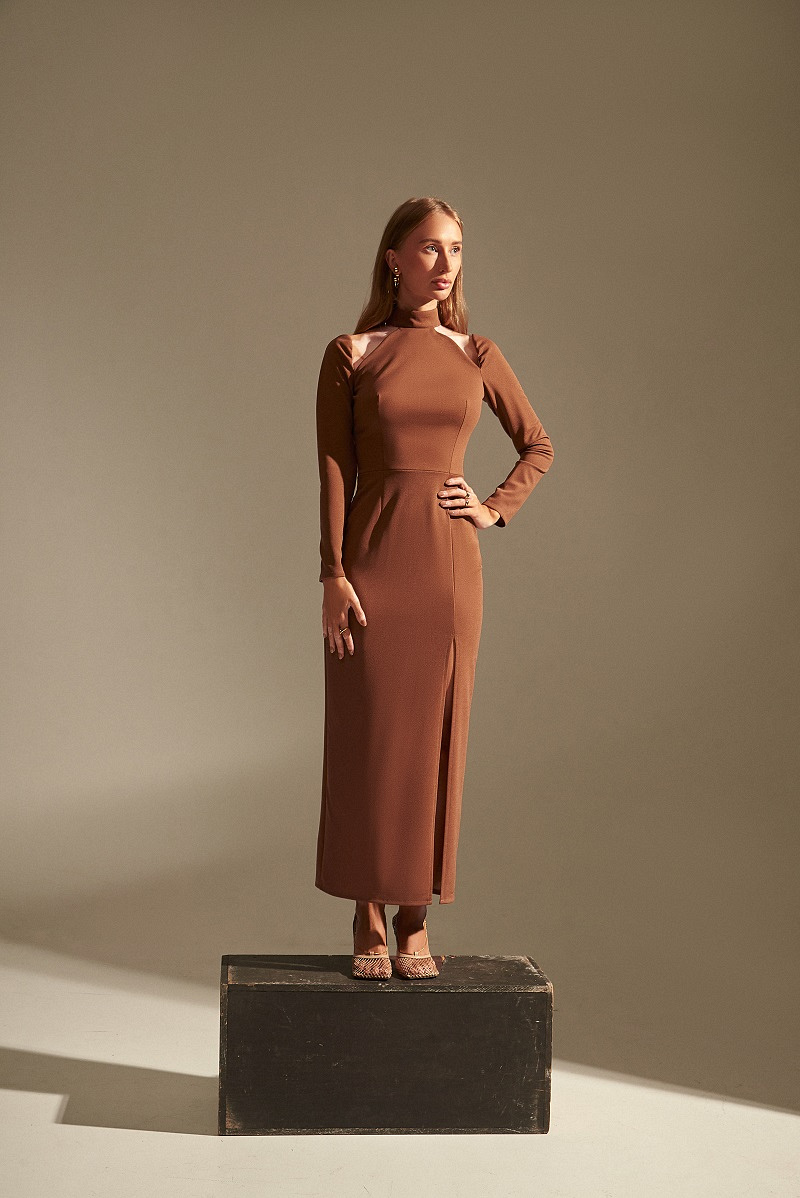 В новую коллекцию вошли трендовые костюмы-двойки с короткой юбкой, а также платья самых разных фасонов и длины, которые идеально подчеркивают фигуру. Здесь можно найти как мини, так и миди, как модели с подчеркнутой линией декольте, так и те, главный акцент в которых сделан на пикантный разрез. К слову, несмотря на то, что коллекция вдохновлена яркими работами Кен Хонг Лунга, в ней есть достаточно вещей спокойных базовых цветов, которые будут актуальными из сезона в сезон: черного, песочного, шоколадного и не только.