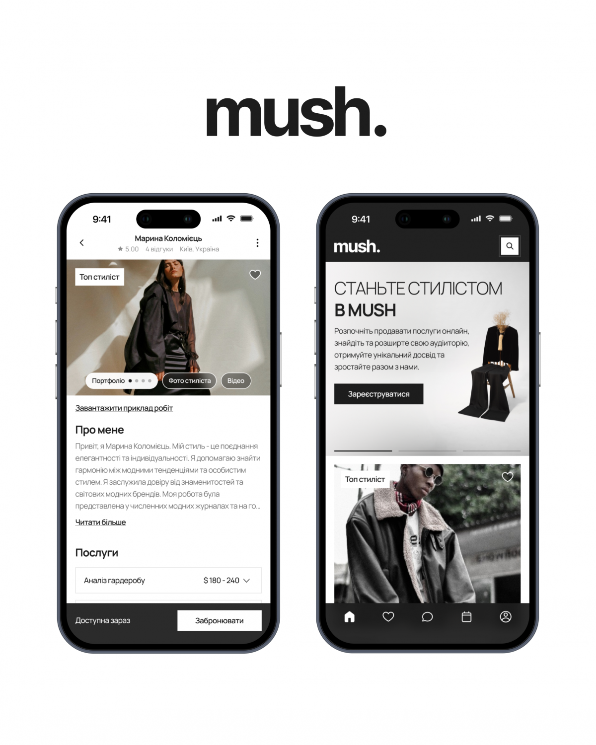 В Україні запрацював перший унікальний маркетплейс для пошуку стилістів — MUSH, що має на меті кардинально вплинути на ринок сфери послуг. Місія проєкту — зробити пошук персонального стиліста таким простим та доступним, як і оренда готелю для своєї подорожі. Сервіс пропонує безліч послуг: розбір гардероба та створення готових образів на щодень, шопінг-супровід з економією часу у магазині, підбір вбрання на подію, створення тематичної капсули, консультацію зі стилістом, стайлінг-знімання тощо. За допомогою MUSH можна записатися на обрану послугу як в офлайн-, так і в онлайн- форматі.
