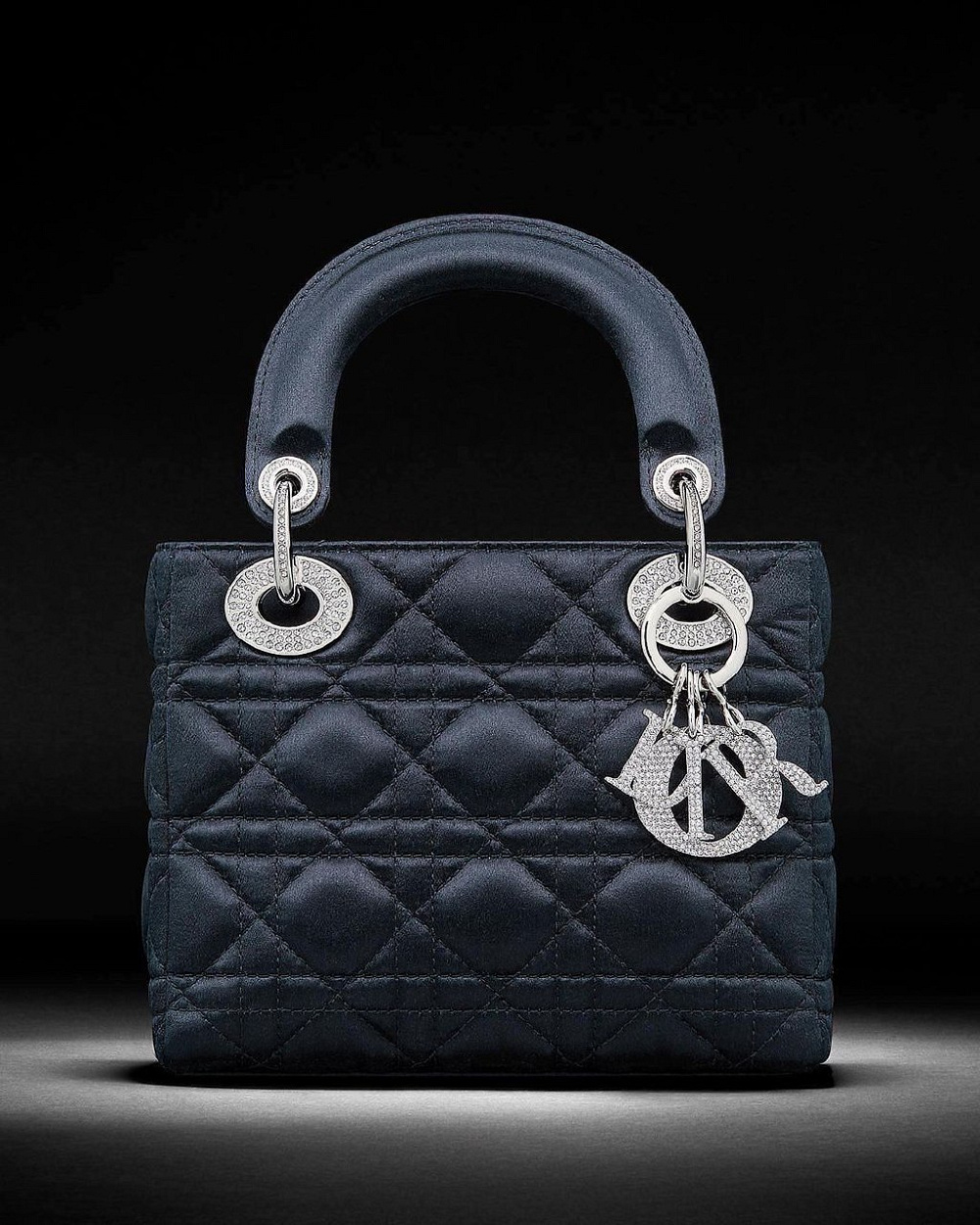 Сумка Lady Dior виконана з темно-синього атласу і має знакові шви Dior Cannage та підвіски Dior. Оновлена модель також буде представлена у нових варіантах: Lady D-Lite і Lady D-Joy.