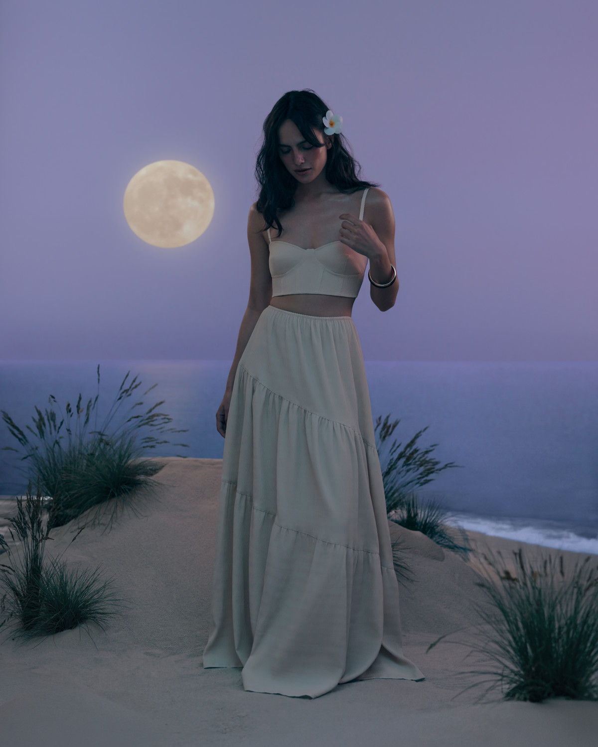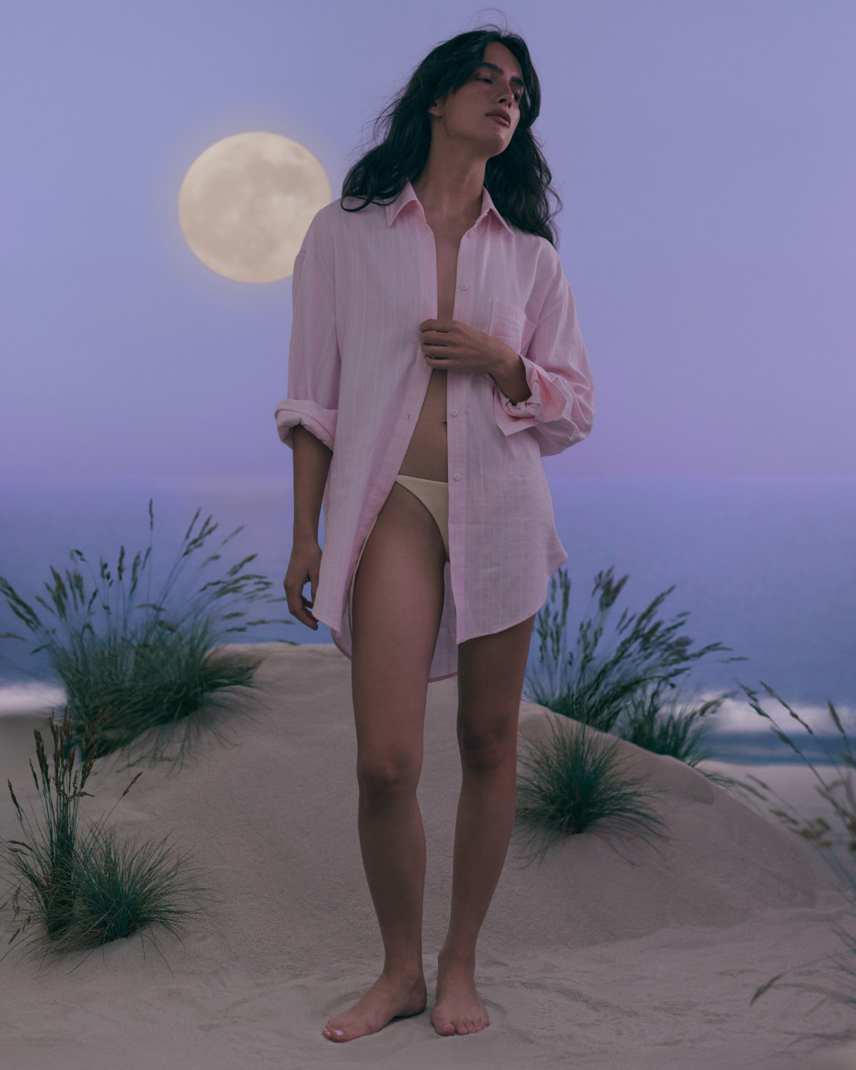 Цього разу героїня вирушає в подорож без маршруту: вона йде босоніж по ще теплому піску, зупиняється під поривами вітру, що грається з тканинами, заплющує очі від сонця, яке просочується крізь повітря. Тут нічого зайвого — лише тіло, простір і відчуття, яке хочеться зберегти надовго.