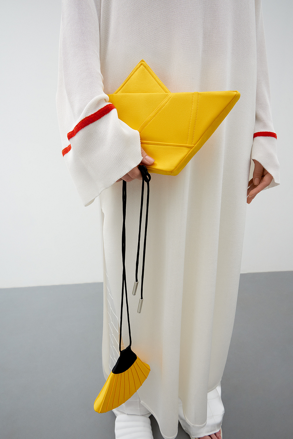 В коллекции SS’22 дизайнер бренда Светлана Бевза переосмыслила форму клатча Mini Fan Clutch, создав его мини-версию. В новой интерпретации Mini Fan Bag дополнен атласным шнуром, что позволяет носить аксессуар через плечо или как кросс-боди. Mini Fan Bag представлен в желтом и голубом цвете.
