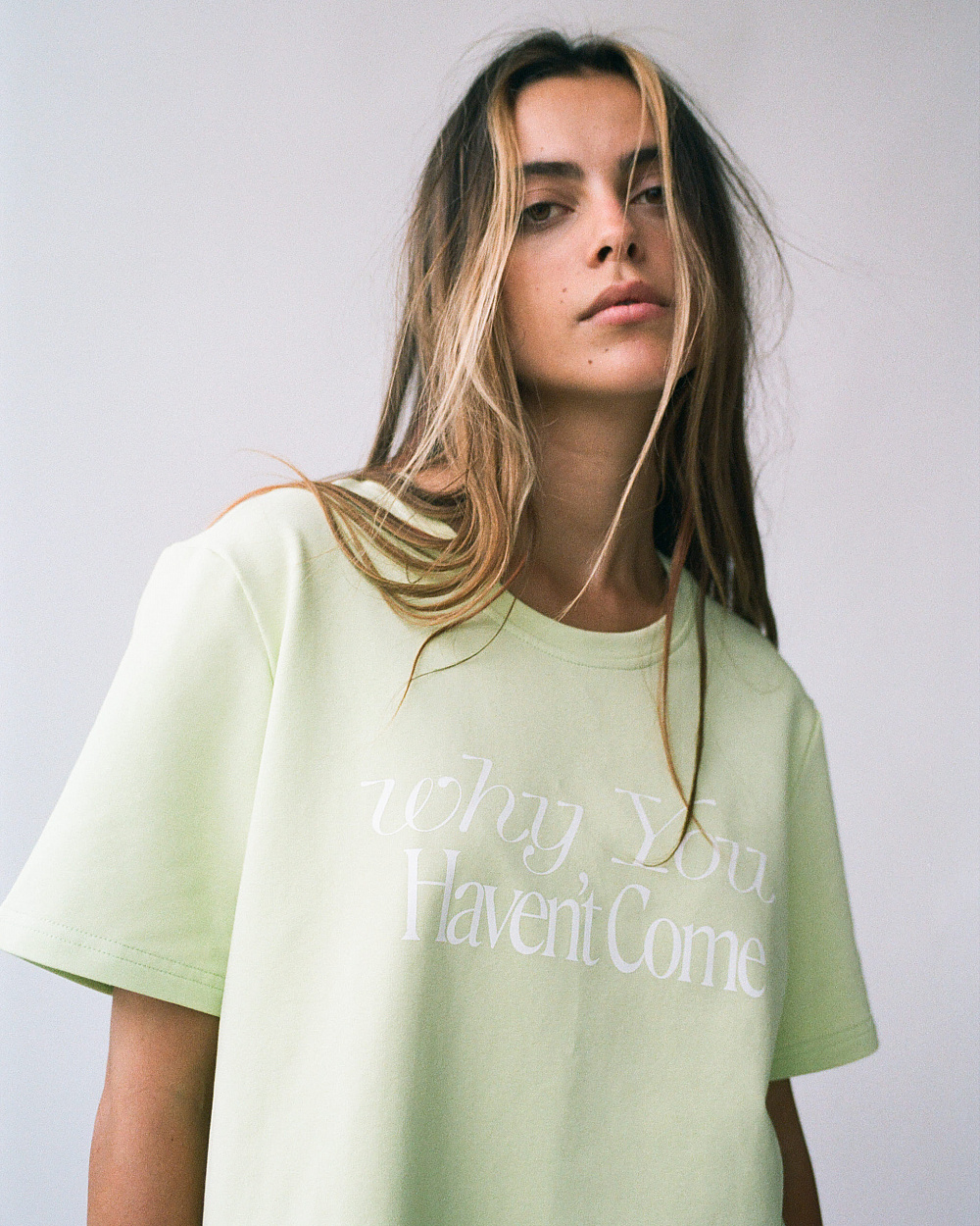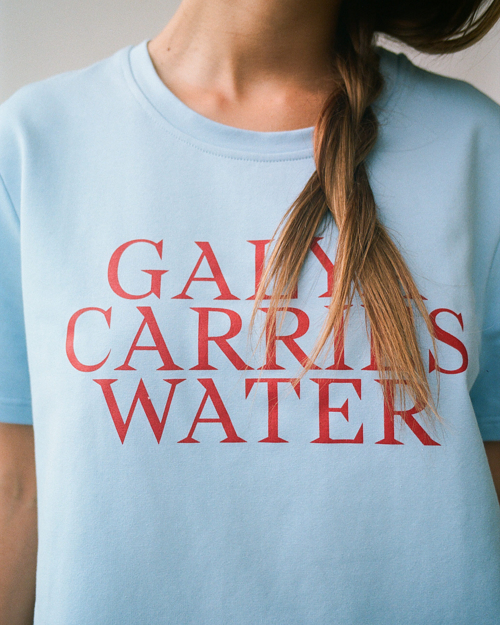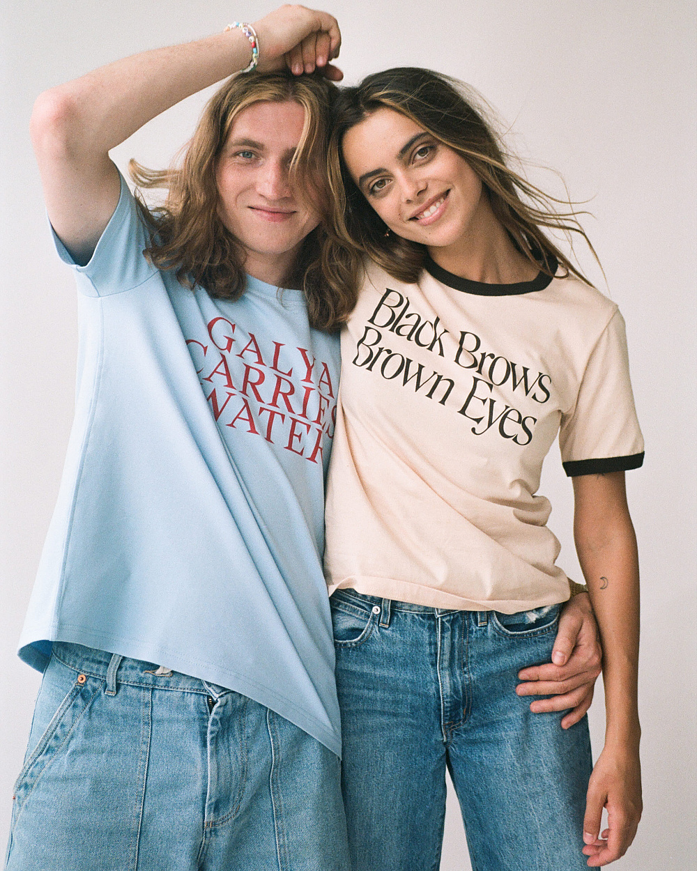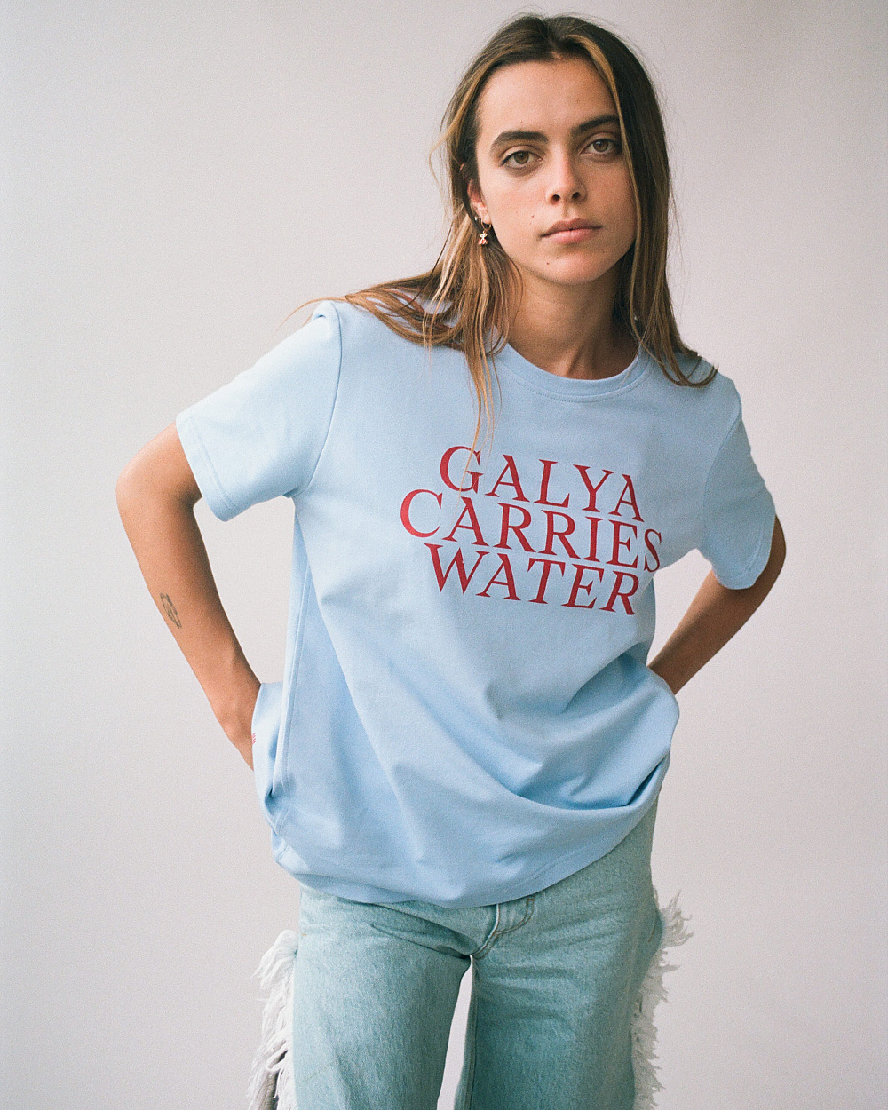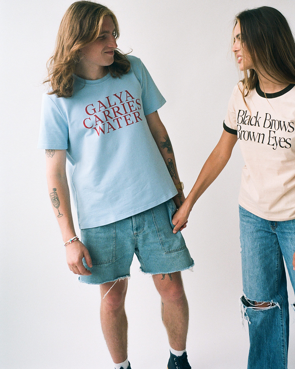 До колекції увійшло десять футболок в різних кольорових варіаціях та написах, але не оригінальних, а перекладених на англійську мову музичними сервісами. Так, «Галя несе воду» стала Galya carries water, «Ой, у вишневому саду» — Oh, in the cherry orchard, «Чом ти не прийшов» — Why you haven’t come, «Чорнії брови, карії очі» — Black brows, brown eyes. Ці композиції були обрані не лише через свою популярність, а й завдяки видатним рімейкам: «Несе Галя воду» та «Чом ти не прийшов» у виконанні «Тріо Маренич», «Ой, у вишневому саду» Ніни Матвієнко та «Чорнії брови, карії очі» Анатолія Солов’яненка. До колаборації також увійшли дві махрові сумки — рожева з білою вишивкою Galya carries water та жовта з аналогічним написом блакитного кольору.