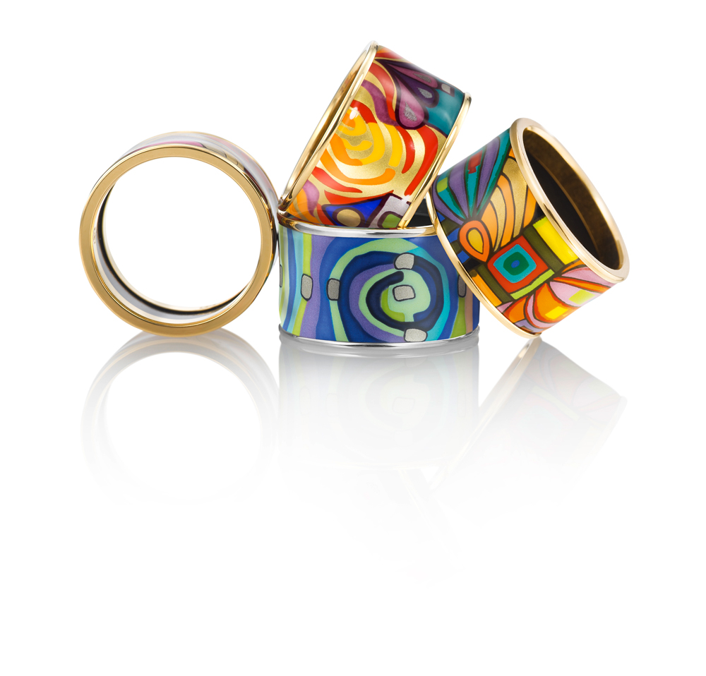Под влиянием картины «Ириналэнд за Балканами» и философии, присущей разностороннему гению Фриденсрайха Хундертвассера, художники Freywille создали многогранный дизайн новой коллекции украшений.