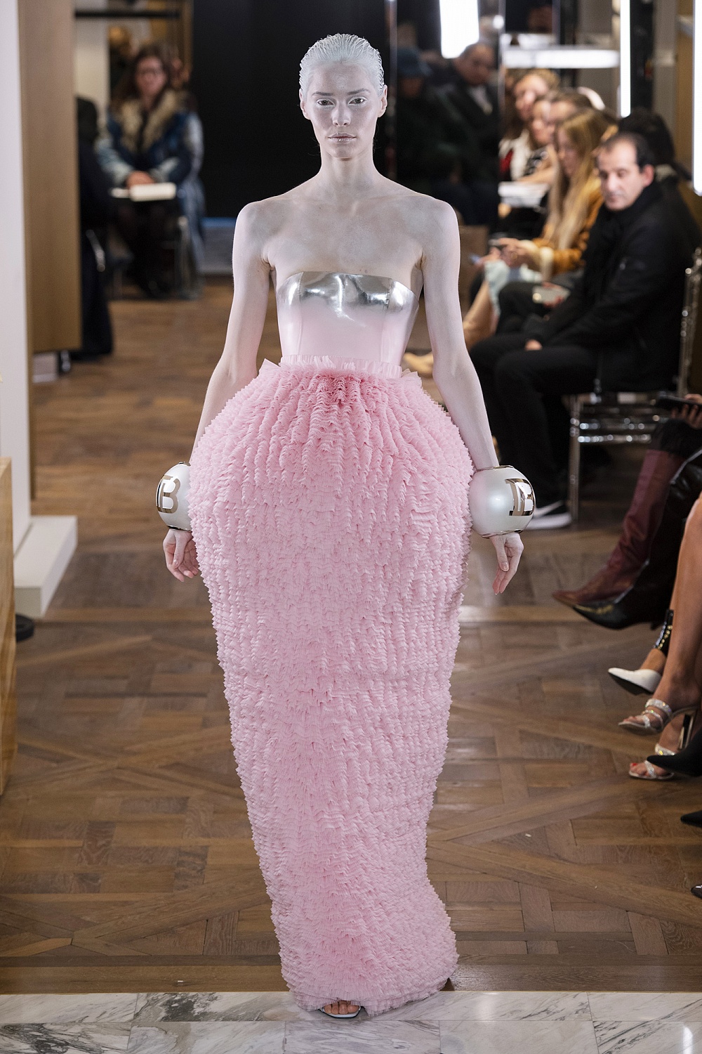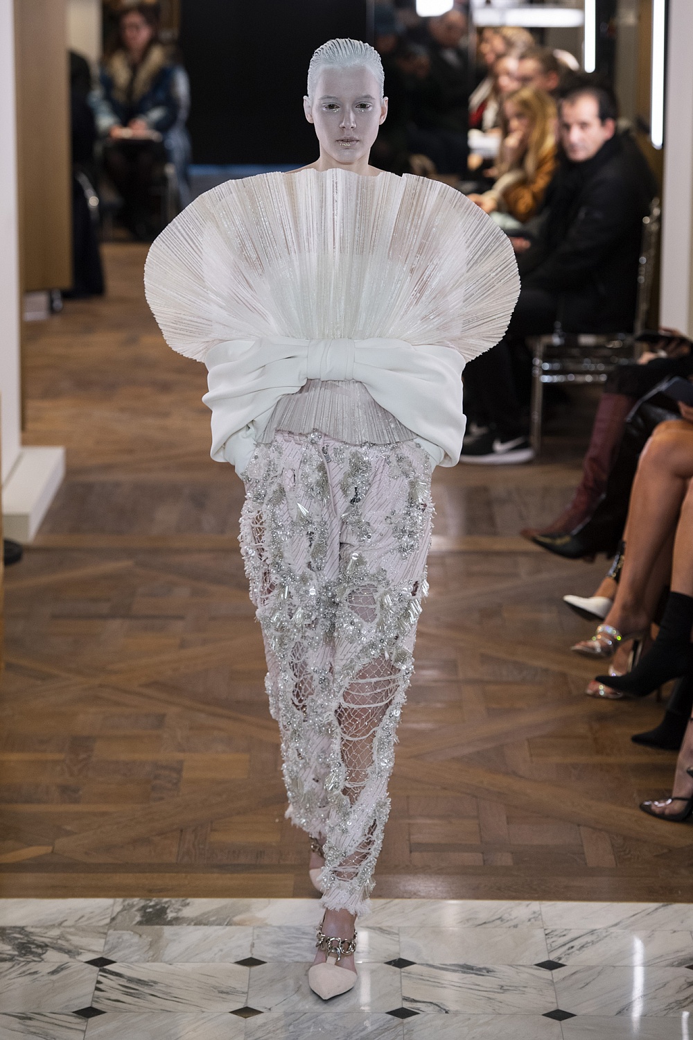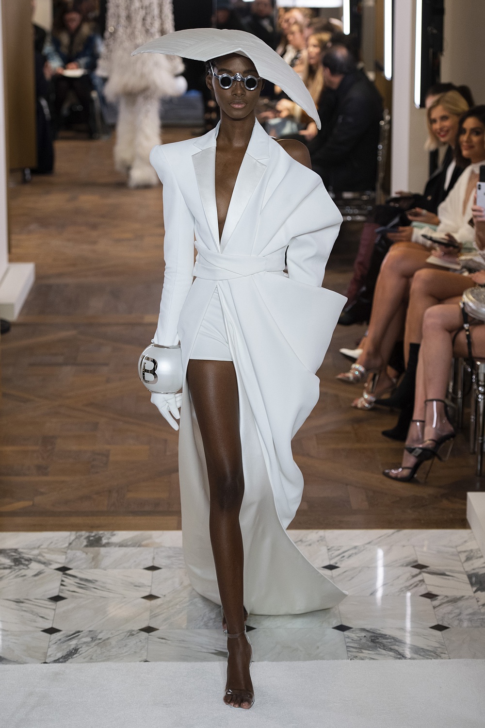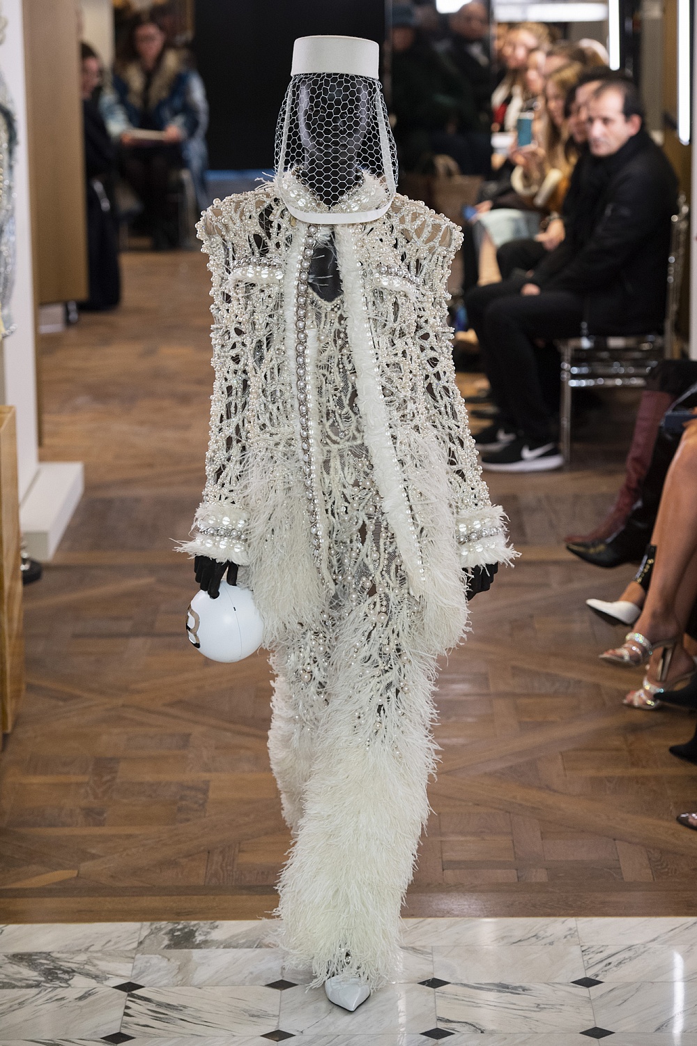 Спустя 16 лет Balmain французский Дом возвращается на Парижскую неделю высокой моды. Дебютная коллекция Оливье Рустена в жанре Haute Couture получилась футуристичной и во многом отсылает к архивным работам Пьера Бальмена и Оскара де ла Ренты (последний был креативным директором Дома с 1993 по 2002 год). «Мне хотелось вернуться к истокам», — признался Рустен в одном из недавних интервью. Модели вышли на подиум в расшитых перьями и пайетками жакетах и платьях, затянутых на талии белоснежных пальто и причудливой формы шляпах.