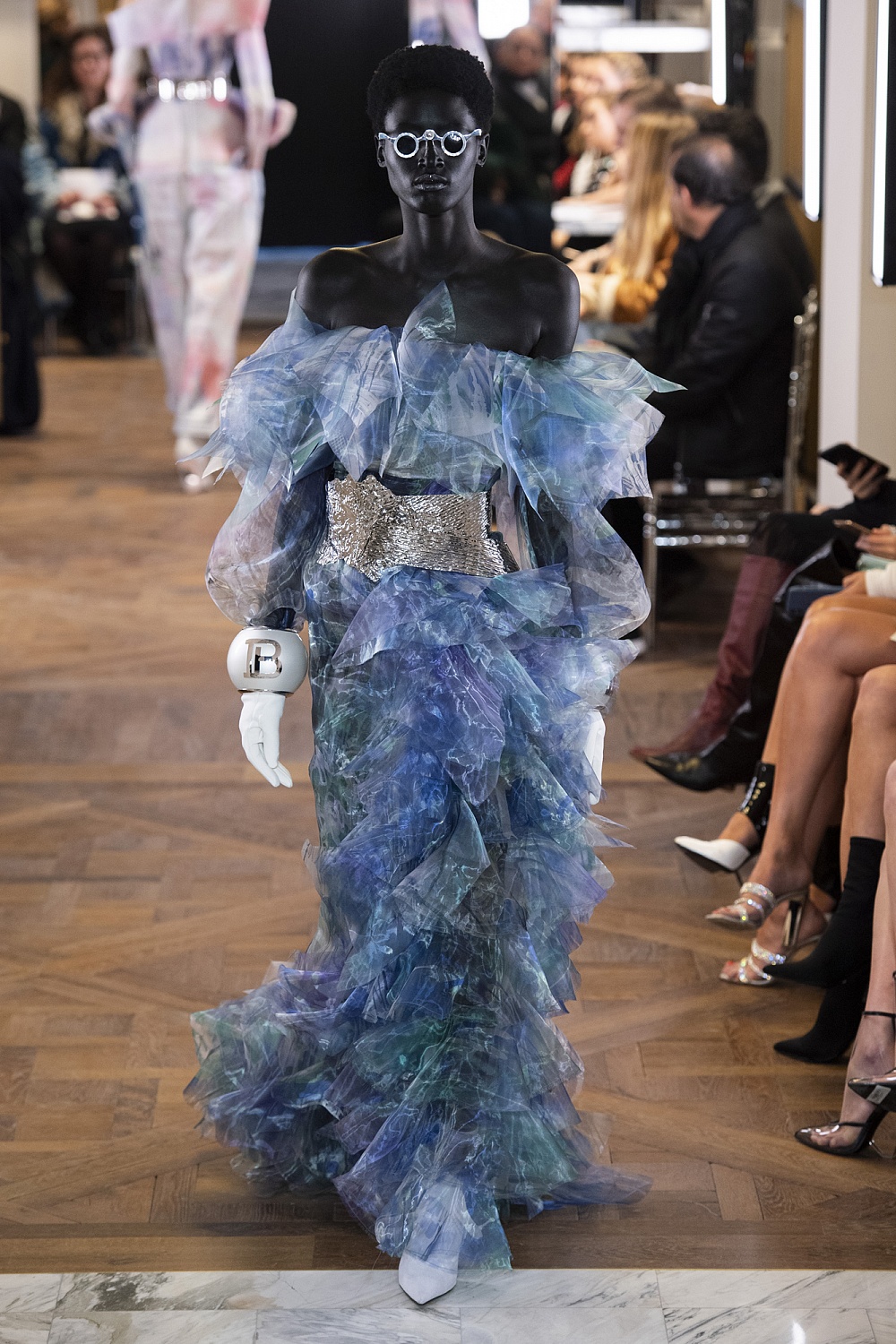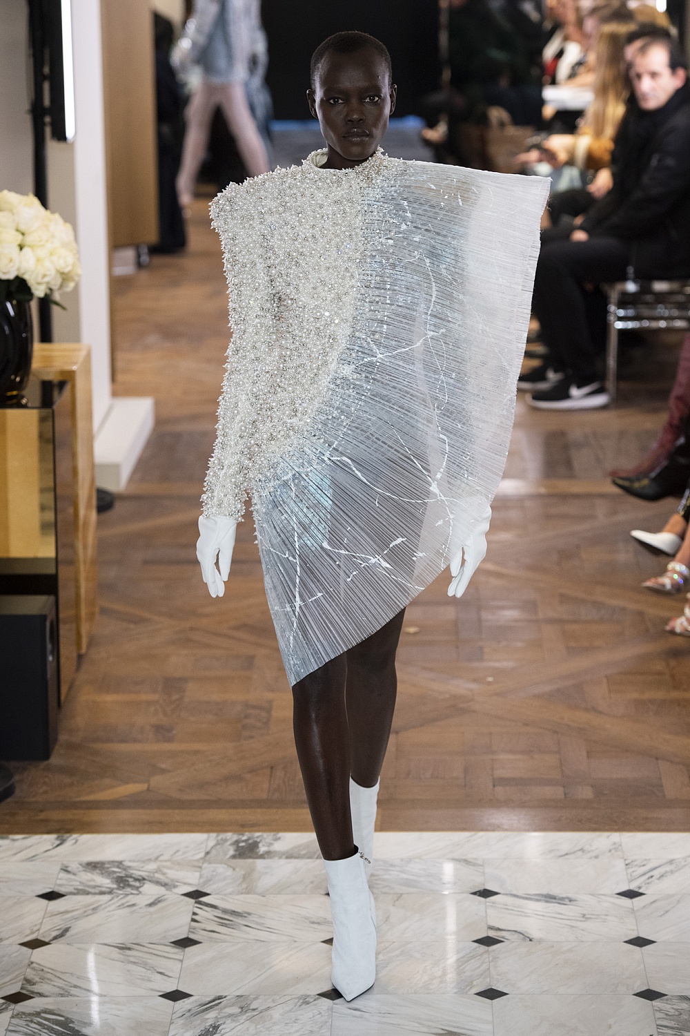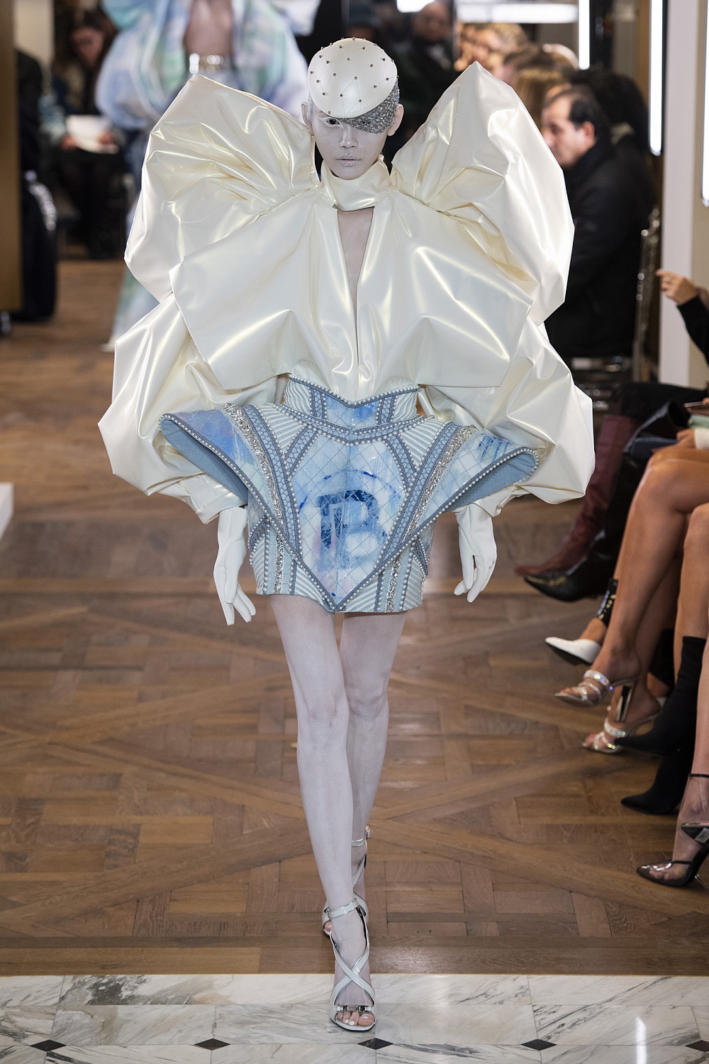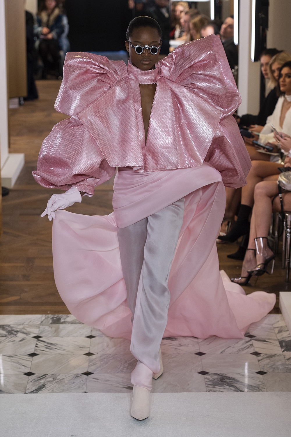 Спустя 16 лет Balmain французский Дом возвращается на Парижскую неделю высокой моды. Дебютная коллекция Оливье Рустена в жанре Haute Couture получилась футуристичной и во многом отсылает к архивным работам Пьера Бальмена и Оскара де ла Ренты (последний был креативным директором Дома с 1993 по 2002 год). «Мне хотелось вернуться к истокам», — признался Рустен в одном из недавних интервью. Модели вышли на подиум в расшитых перьями и пайетками жакетах и платьях, затянутых на талии белоснежных пальто и причудливой формы шляпах.