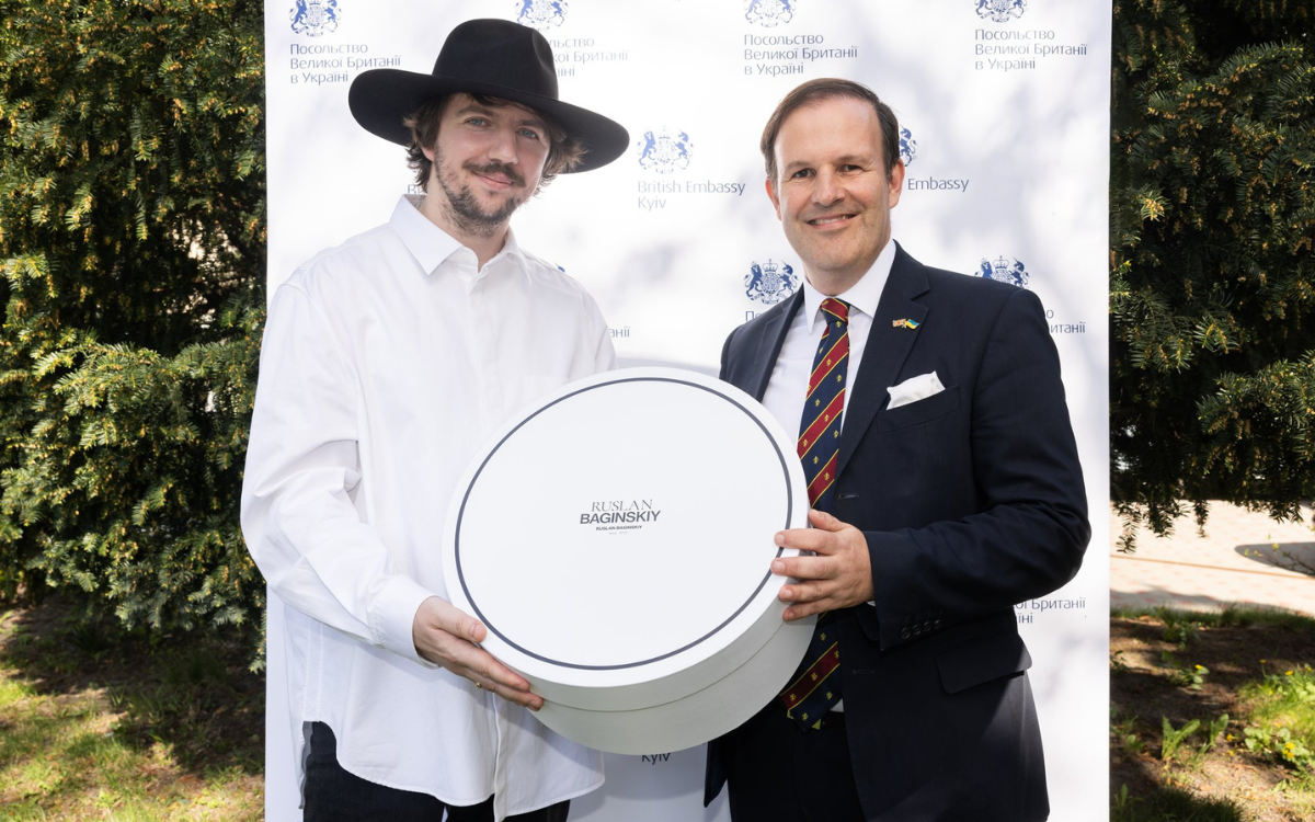 Руслан Багінський передав капелюшки у дворі Посольства Великої Британії, що стало можливим завдяки підтримці Міністерства закордонних справ України.