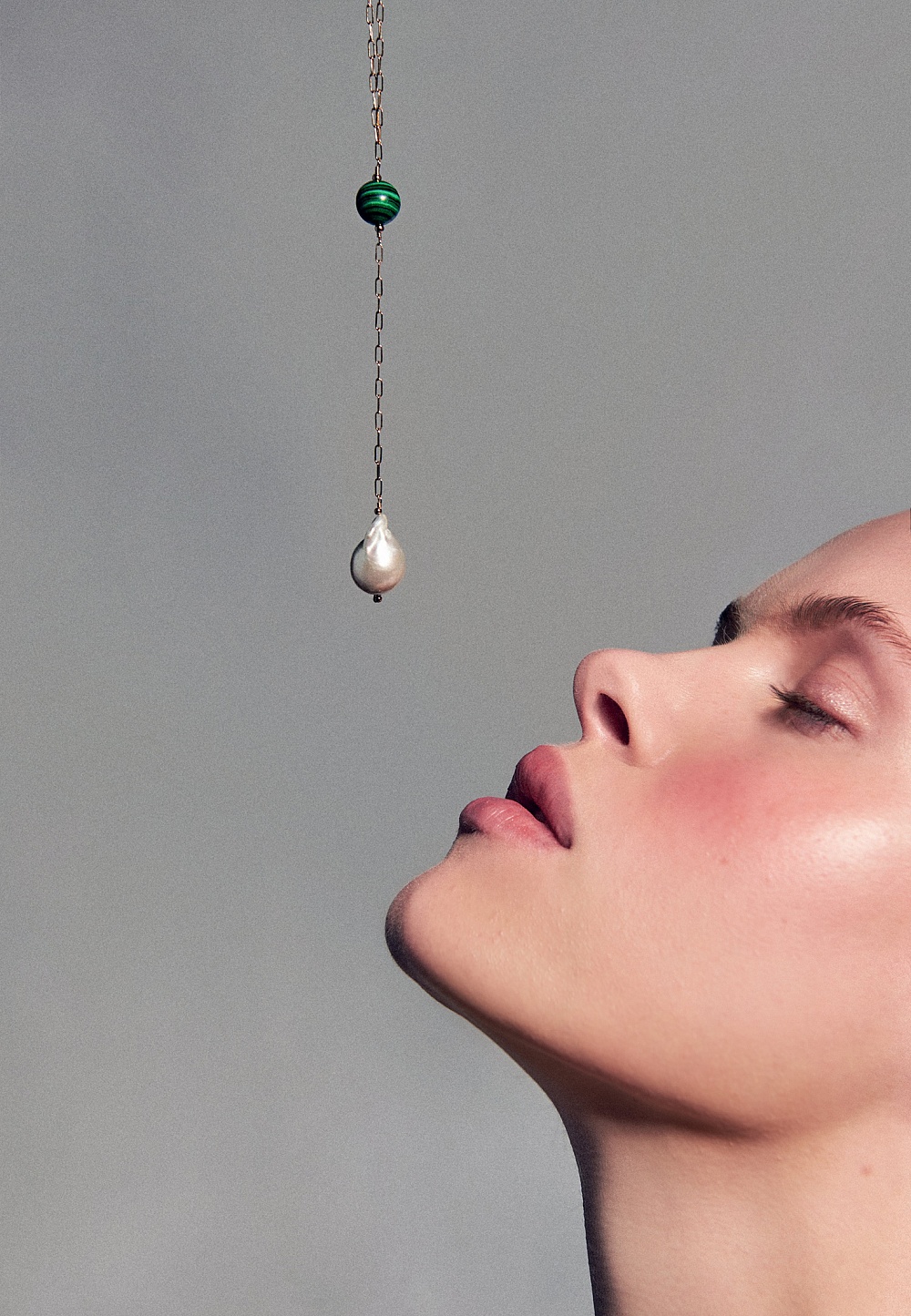 Тема Азии, которая была центральной в весенне-летней коллекции одежды, продолжается и в коллекции украшений: все камни, которые использовали дизайнеры бренда Анастасия Рябоконь и Олеся Кононова, характерны для традиционных оберегов и культовых объектов в Азии. К примеру, пресноводный жемчуг неправильной формы, в древней Азии считался эликсиром молодости и магической силы. Именно жемчуг — основа коллекции и метафора того, как женщина может порой прятаться от внешнего мира за крепкой раковиной, оставаясь внутри хрупкой и уязвимой.