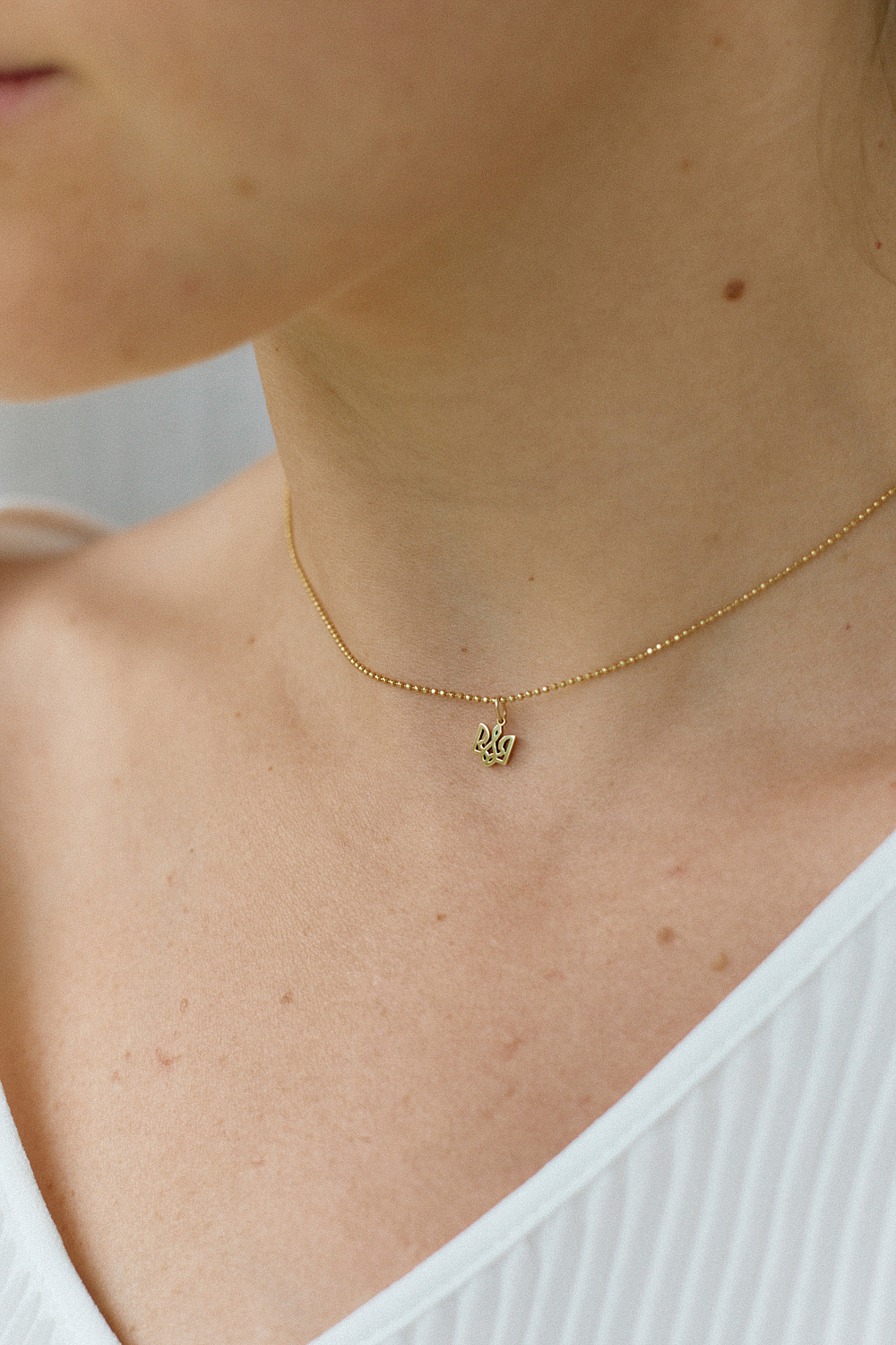Ювелірний бренд Guzema Fine Jewelry випустив нову прикрасу до Дня Незалежності України — тендітний тризуб у жовтому та білому золоті на тонкому ланцюжку.
