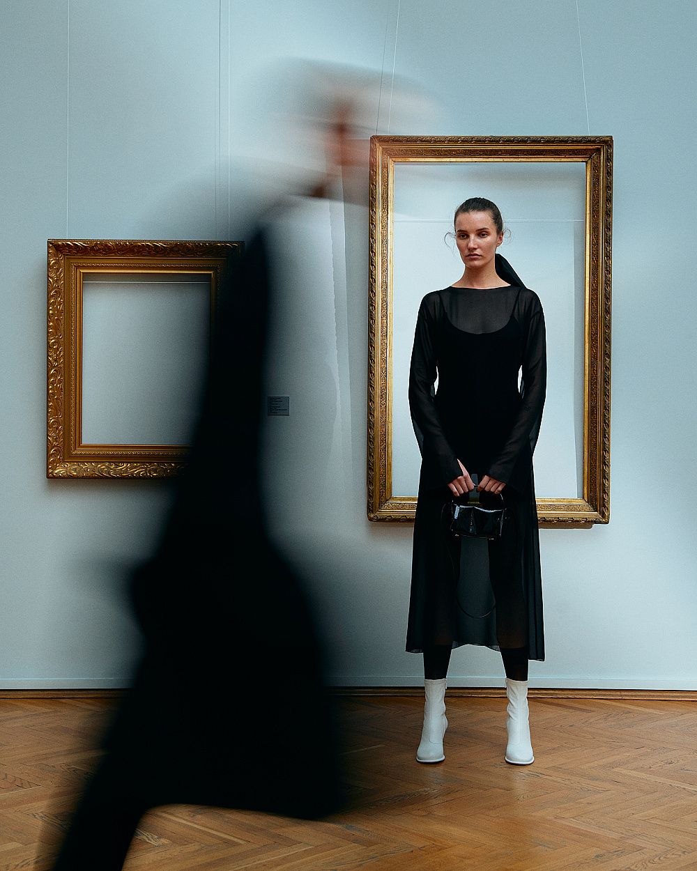 Нова колекція Kachorovska знімалася на тлі порожніх рам на стінах Національного художнього музею України — через війну були евакуйовані всі твори мистецтва. Для бренду це бажання нагадати про війну, що триває в Україні, та спроба у порожнечі, спричиненій страшними подіями, побачити нових себе.