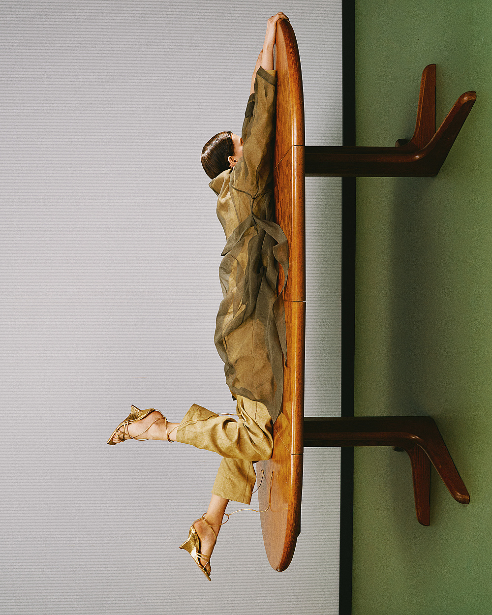 Для зйомок кампейну спеціально створювали декорації — будували візуалізацію кімнати та разом з «Блоха Store» збирали з різних місць дизайнерські меблі з історією. Невимушена грація та гнучкість Ірини у чуттєвих і комфортних образах на контрасті зі складними формами та лініями — метафора того, що навіть у складних умовах і обставинах ми можемо бути справжніми та вільними.