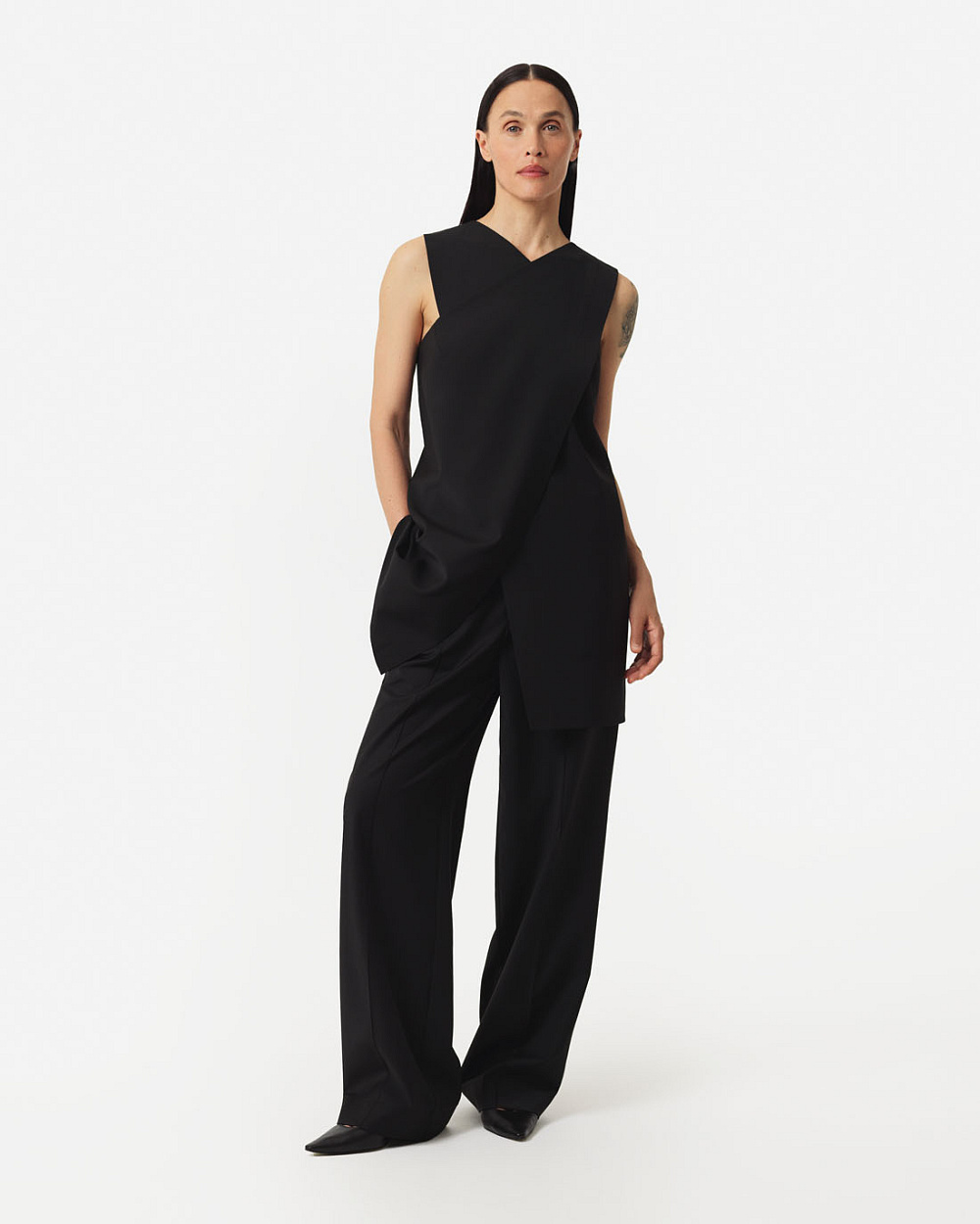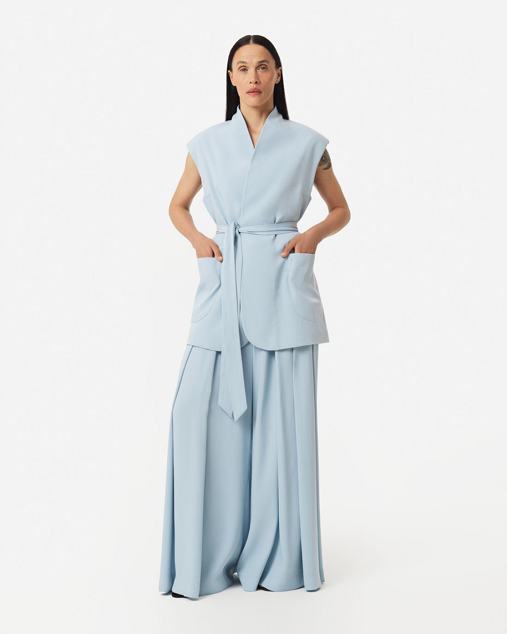 У другій частині весняної колекції представлені оверсайз-піджак із розрізом на спині, в якому буде комфортно під час нашої аномально теплої весни; або широкі брюки зі складками з тенселя, які прикрасять будь-який культурний вихід.