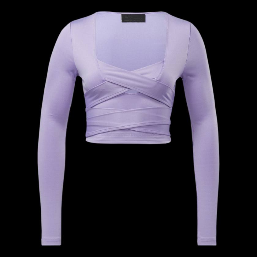 Смелые цветовые сочетания в пастельно-фиолетовой и ярко-красной гамме обязательно привлекут всеобщее внимание, а детали, подчеркивающие талию, и кокетливые сетчатые вырезы создадут стиль, вдохновленный 90-ми годами, который на 100% отражает Карди.