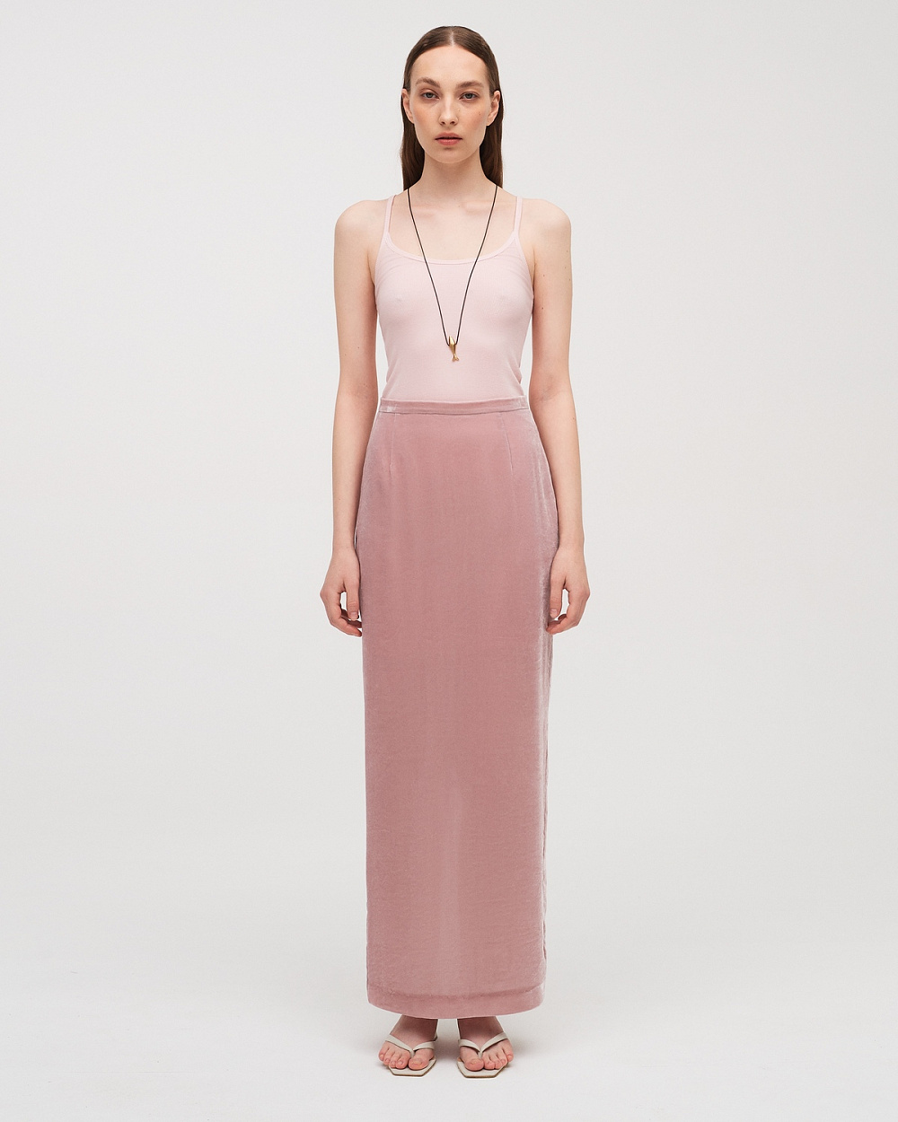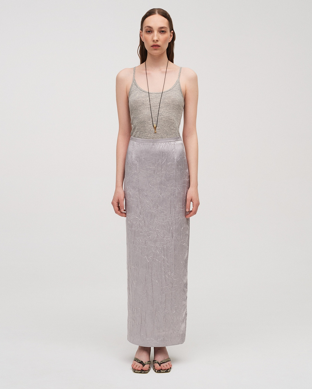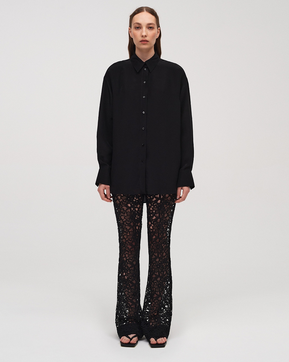 Напівпрозорі брюки з посадкою на стегнах втілені у французькому ажурному мереживі. Матеріали з мерехтливими паєтками, які бренд обрав для спідниць і сорочок, нагадують блиск риб’ячої луски чи крапель води на сонці. Речі з віскозного атласу з м’ятим ефектом задумані як ідеальні компаньйони для літнього темпу та подорожей, адже не потребують прасування. Образи доповнює легкий верхній одяг: сріблястий плащ, довгий чорний кейп та льняний крешований халат.
