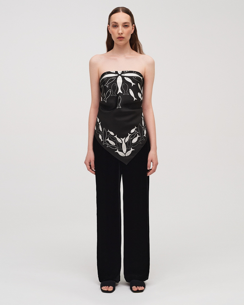 Символічний образ риби з’являється у латунних та срібних прикрасах, у принтах на широких шовкових хустках, що стилізовані під бандани. В різних традиціях риба уособлює мудрість, гармонію, здатність до трансформації та відродження. Деякі види риб гуртуються у зграї, скоординовано рухаються неспокійними водами, тож стають символом зв’язку, єдності.