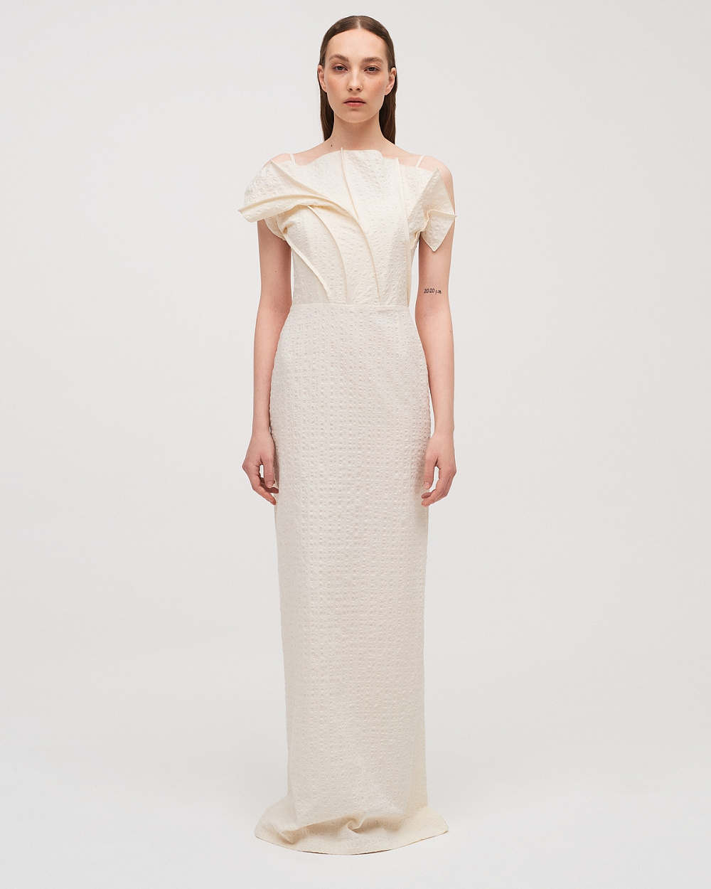 В центрі уваги опиняється сукня та її варіативність, від мінімалізму до ошатності. Довга молочна сукня з топом у формі хвилі — знакова модель, що нагадує своєрідний кораловий риф. До колекції увійшли сім різноманітних фасонів, що будуть доречними і для простих днів, і для особливих вечорів.