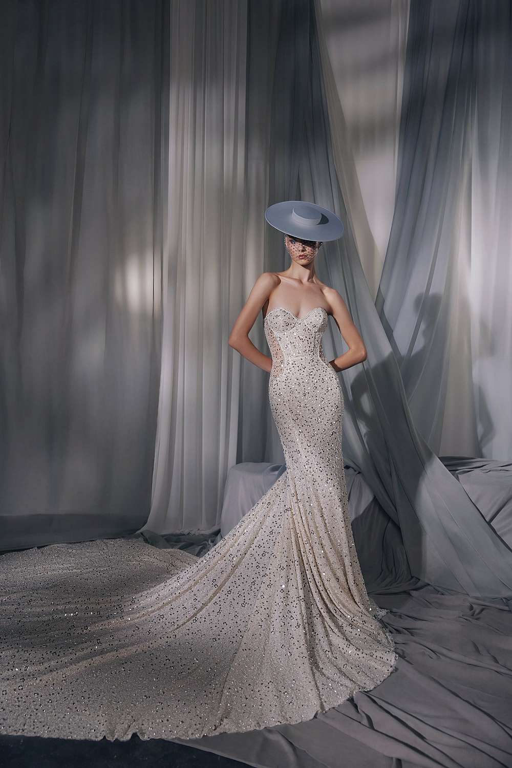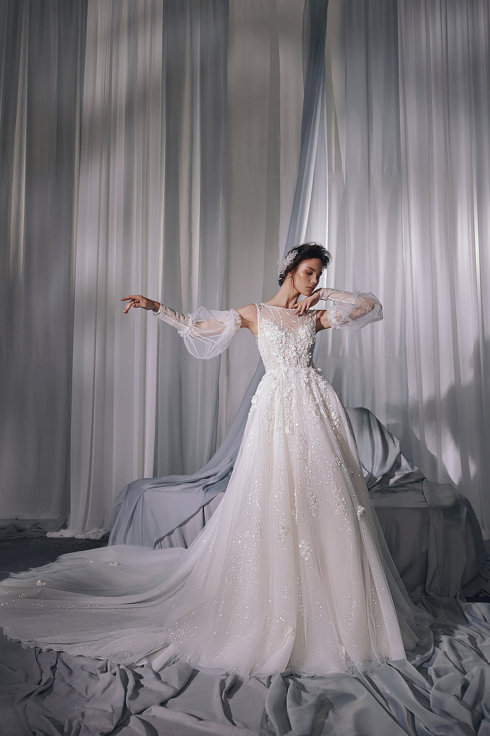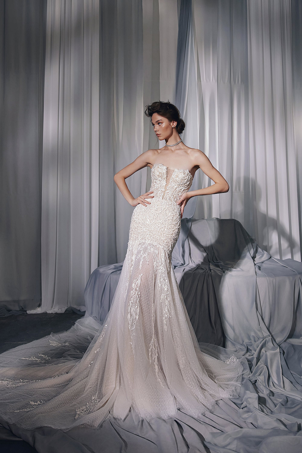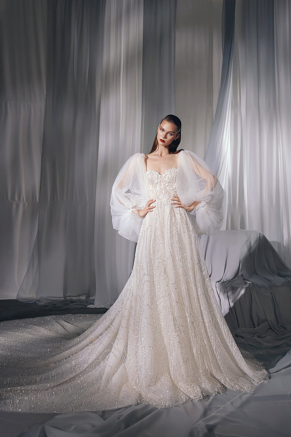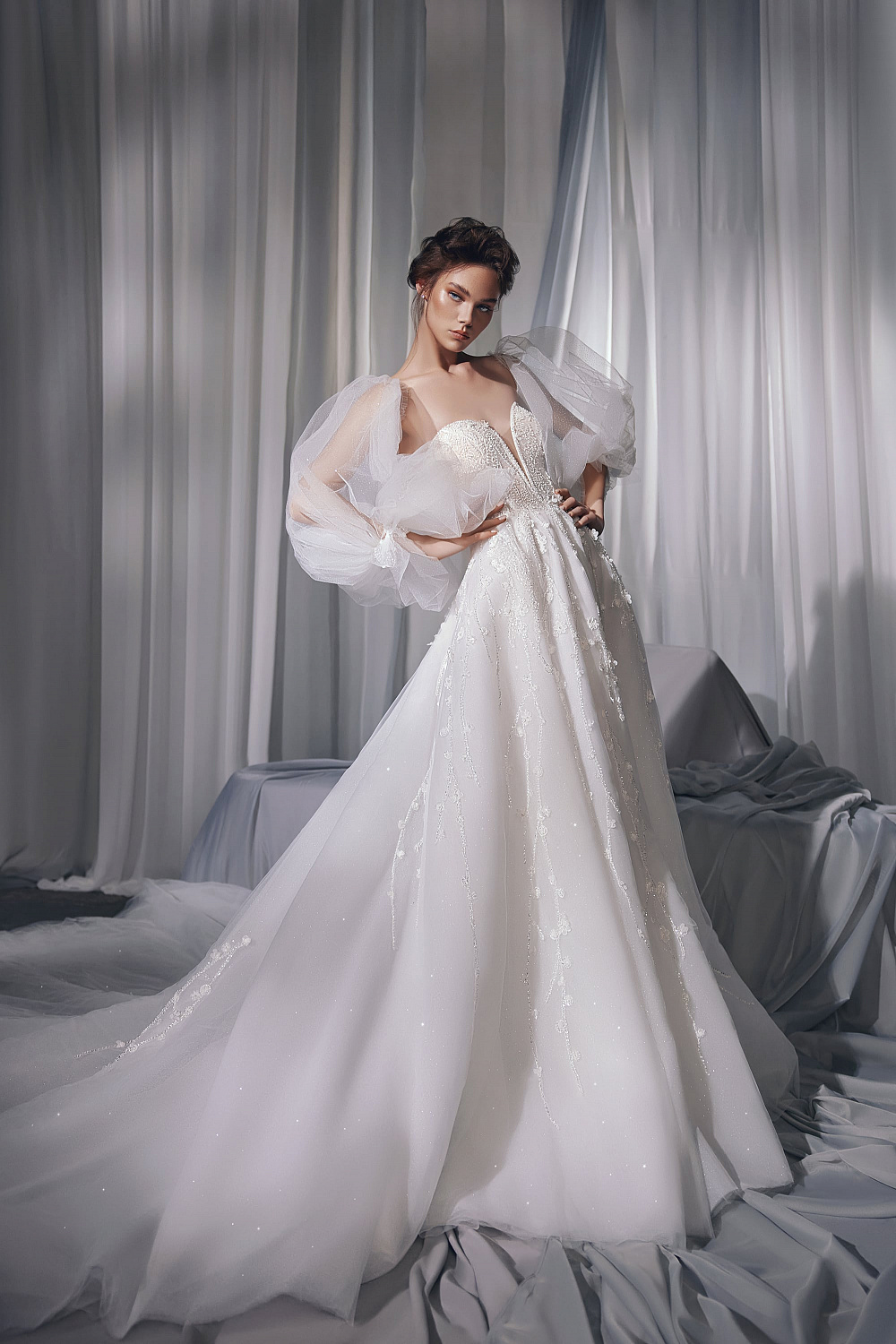 До Carfelli входить лінійка Goddess — оздоблені вишивкою, блискітками та бісером пишні сукні з довгим шлейфом.