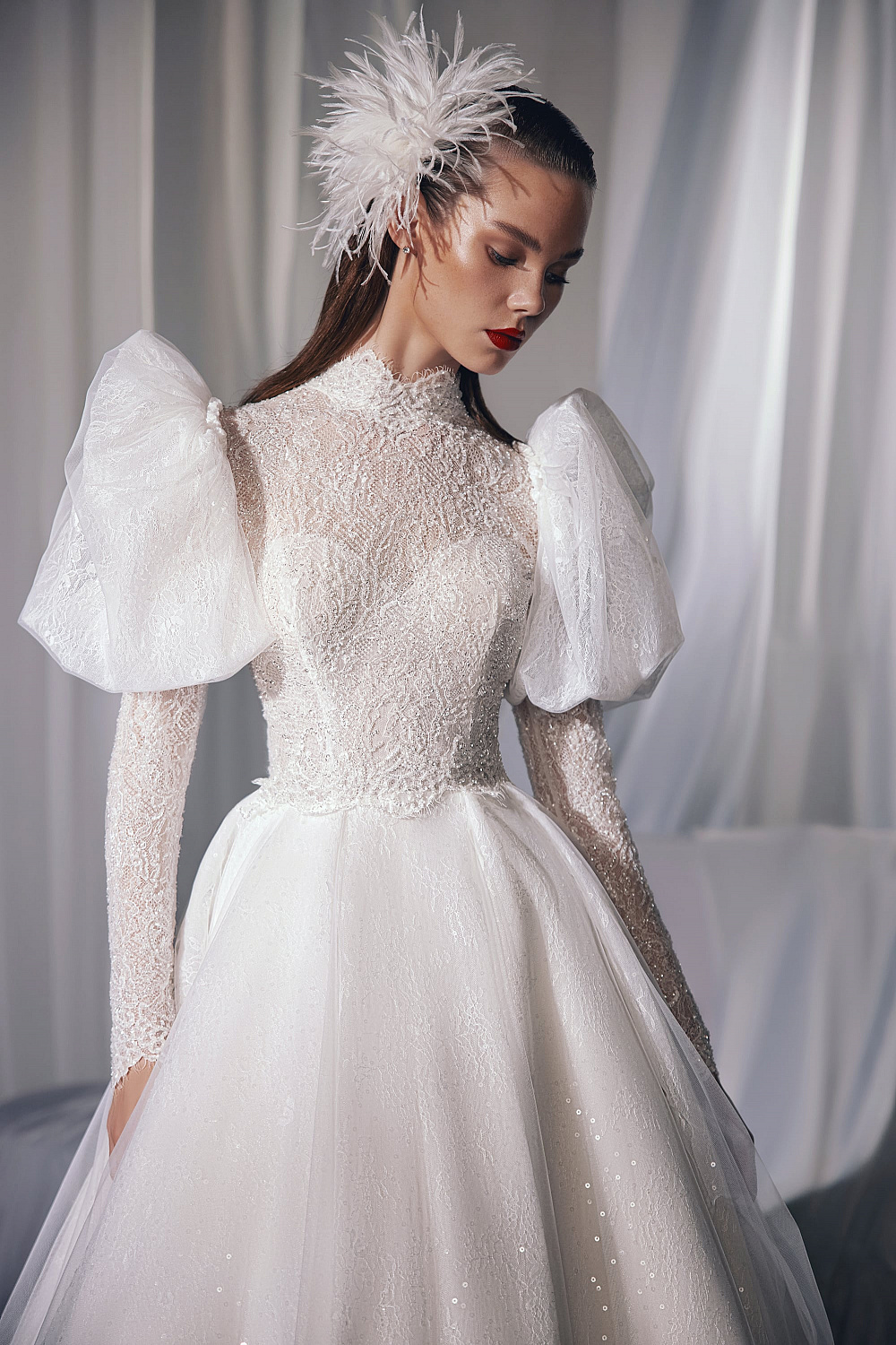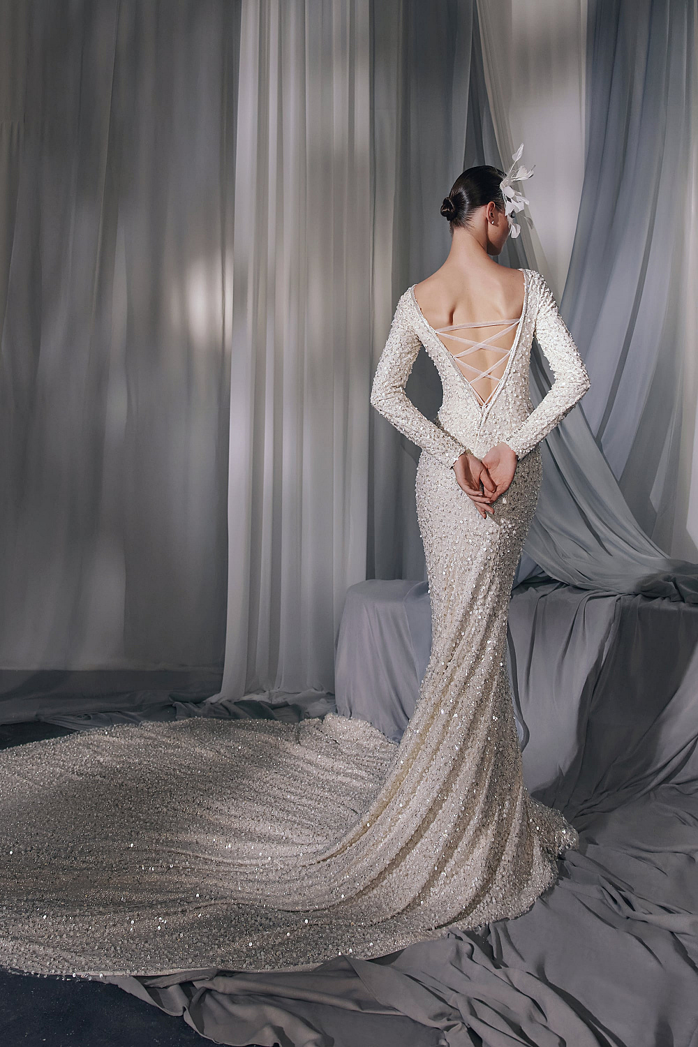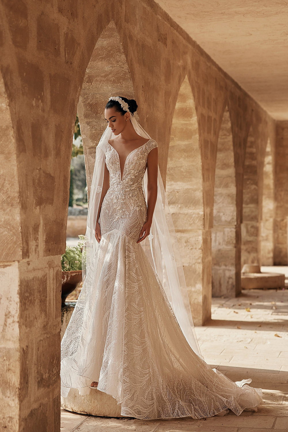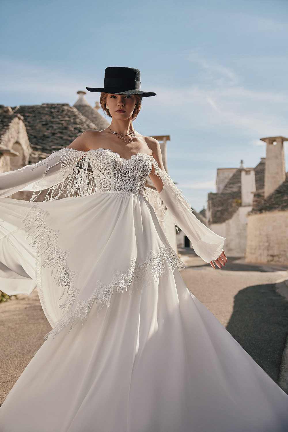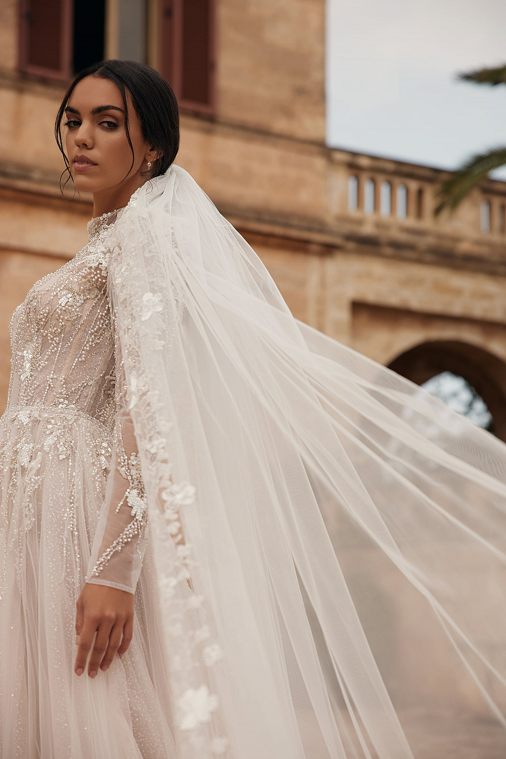 До Carfelli входить лінійка Goddess — оздоблені вишивкою, блискітками та бісером пишні сукні з довгим шлейфом.