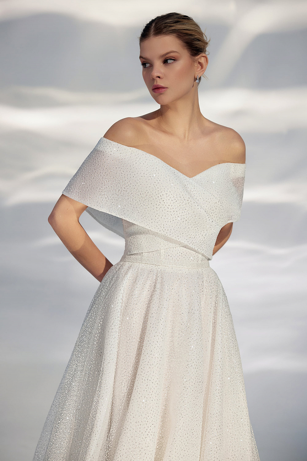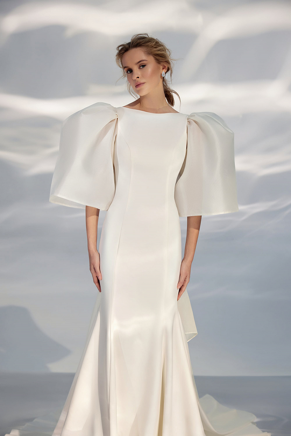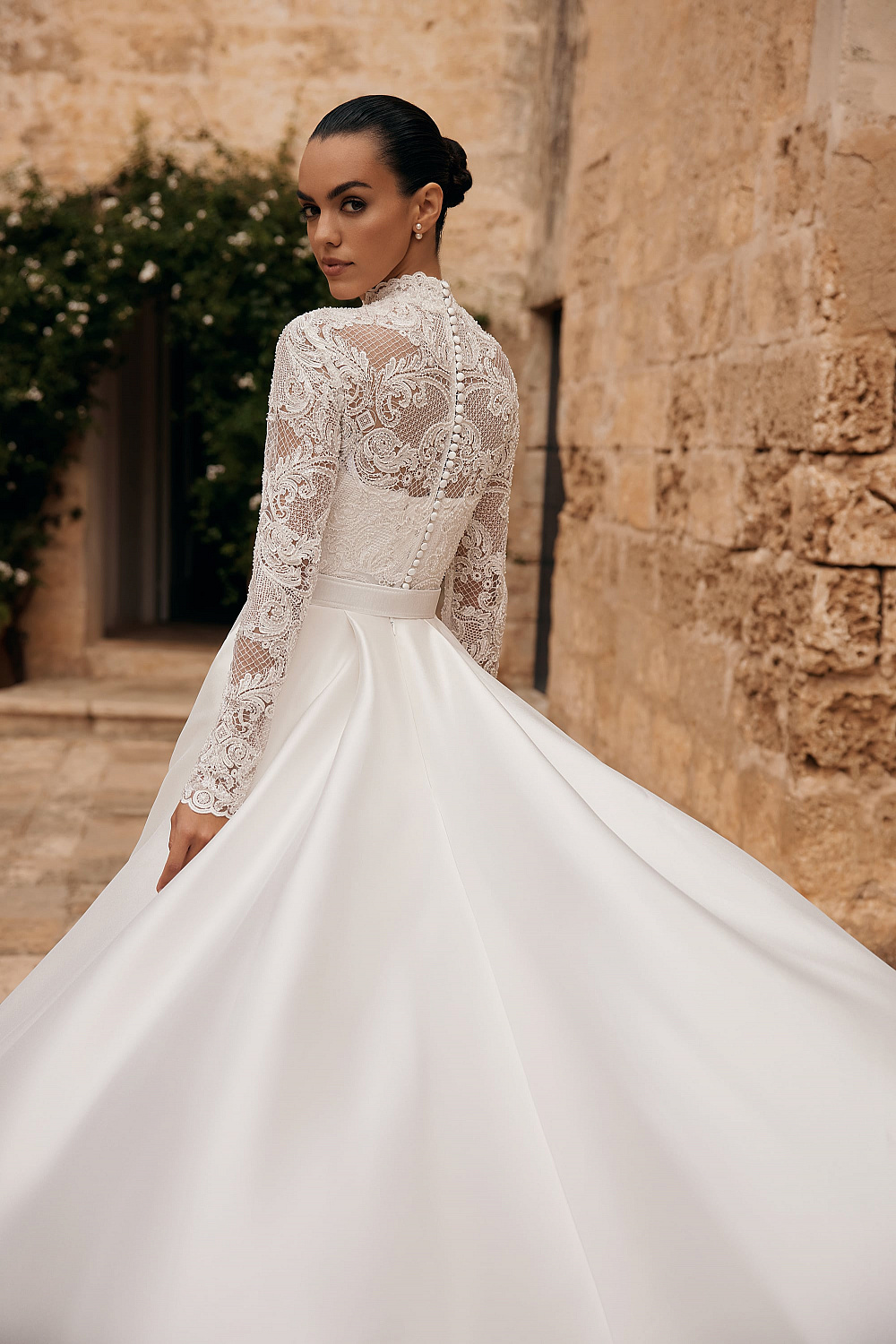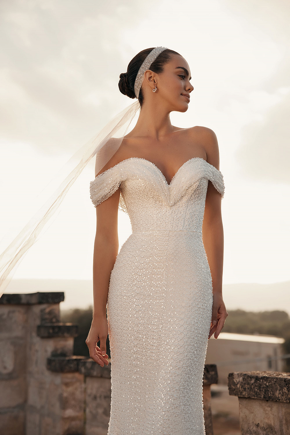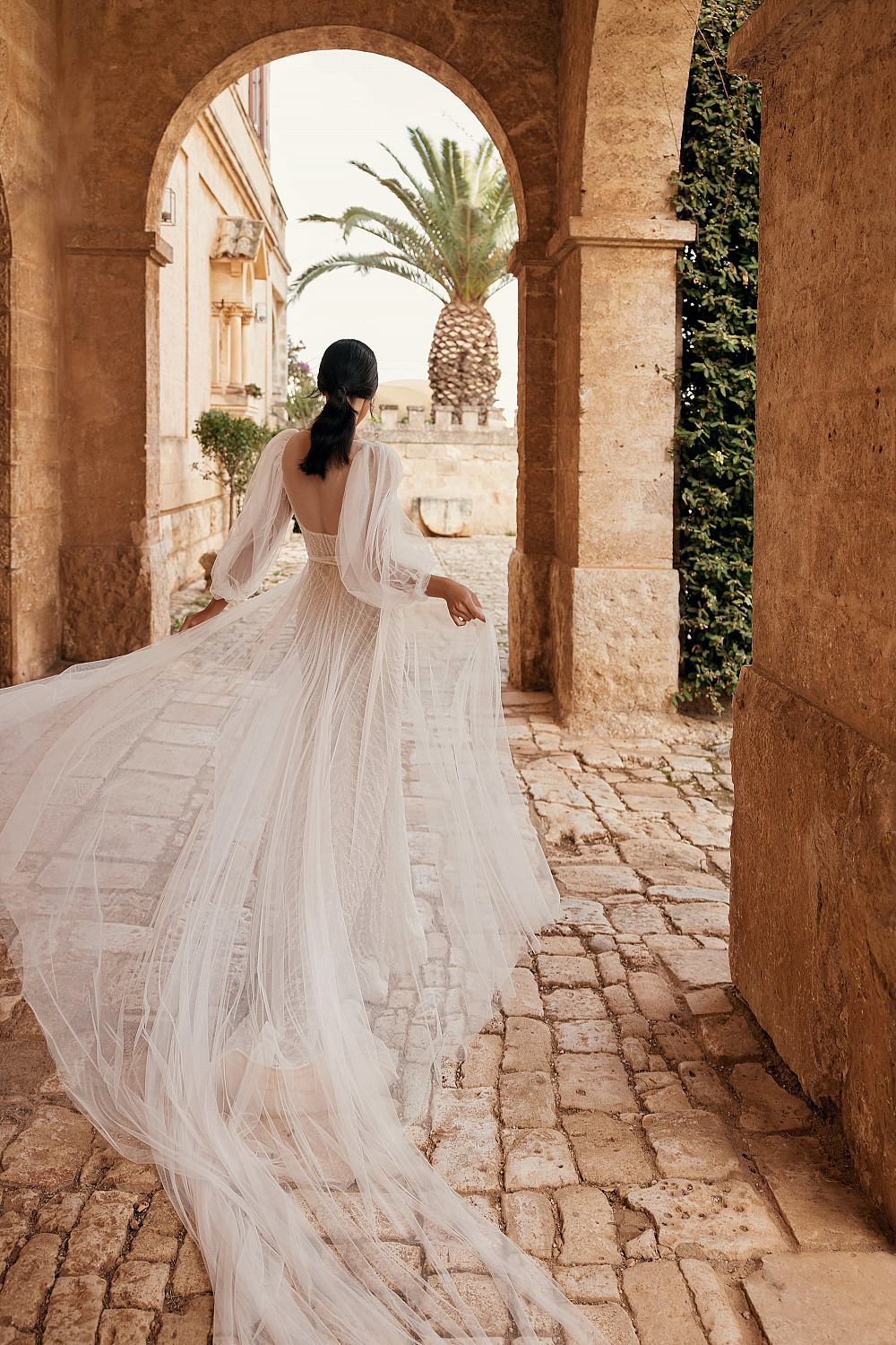 Обравши сукню Madioni, наречена отримає витончений ніжний образ у традиційному весільному стилі.