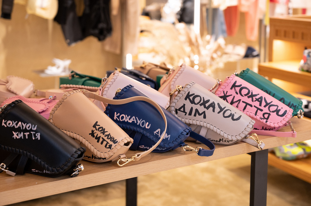 Соня власноруч розписує сумки бренду Babe pay pls. Лімітовані речі з написами від художниці також можна буде згодом придбати на сайті Symbol.ua. Таким чином ви задонатите 50% від вартості кожного товару на благодійний збір.